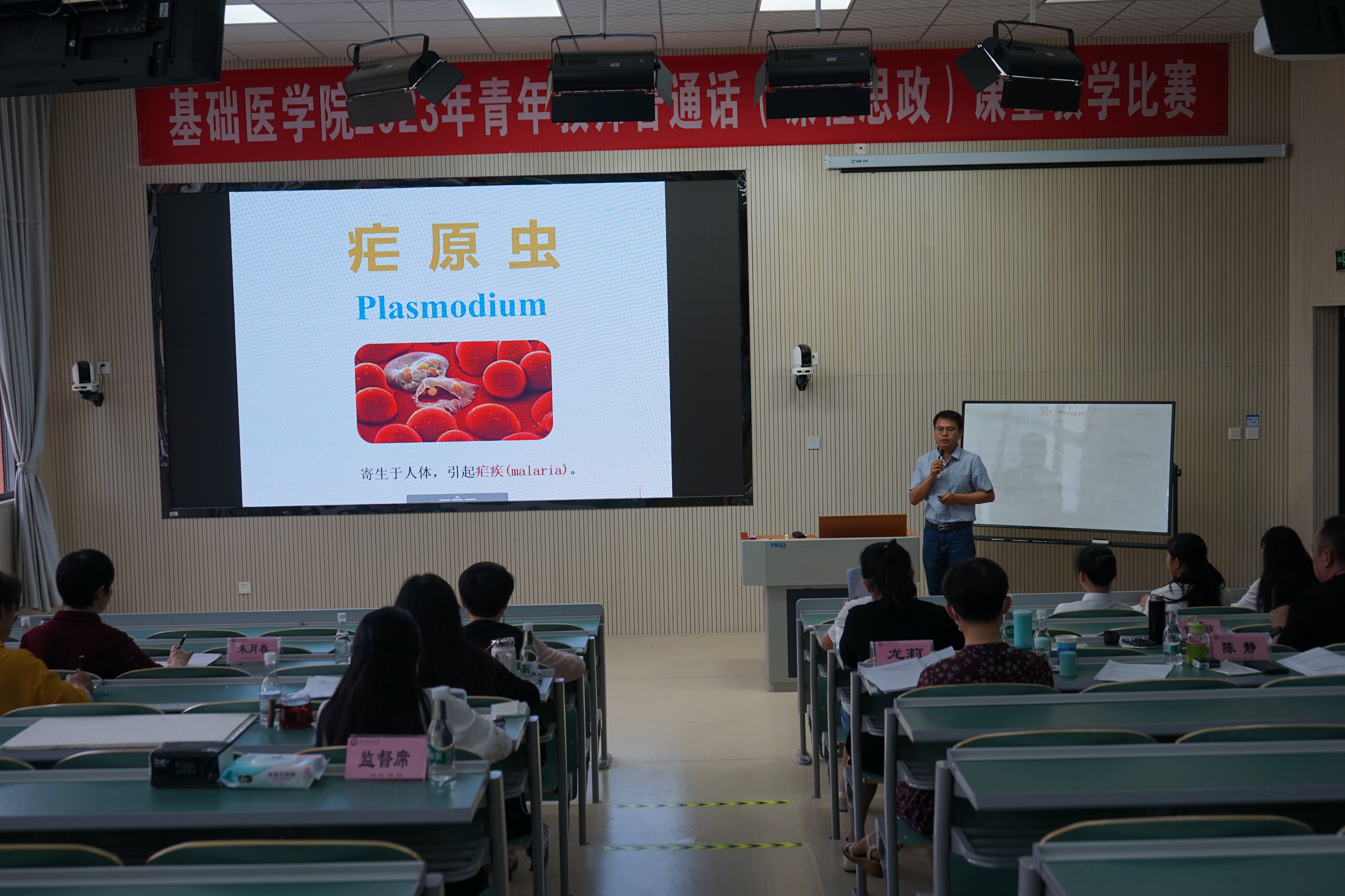 决赛是说课和教案的评比,学院特邀评委对4位参赛教师从课程内容的教学设计思路,课程思政设计和以学生为中心课堂教学的思路、举措、评价等方面进行了点评并提出了许多建设性意见和建议。参赛教师和在座进行观摩学习的所有教师都受益匪浅。经过决赛的激烈角逐,比赛评选出病原生物学与免疫学系王丽明、病理学与病理生理学系陈苗苗2位参赛老师代表基础医学院参加学校层面的讲课比赛。