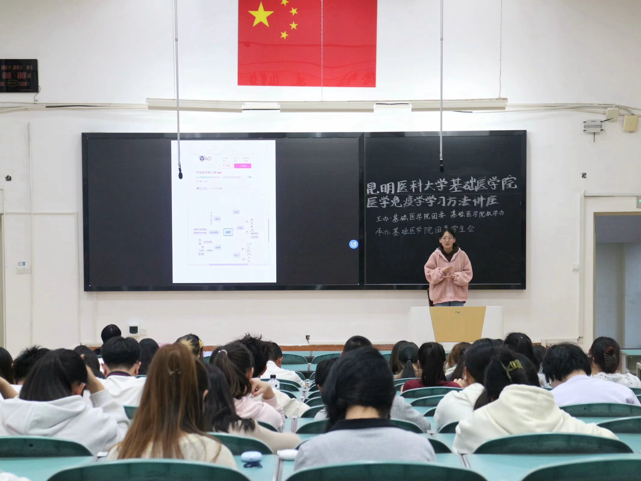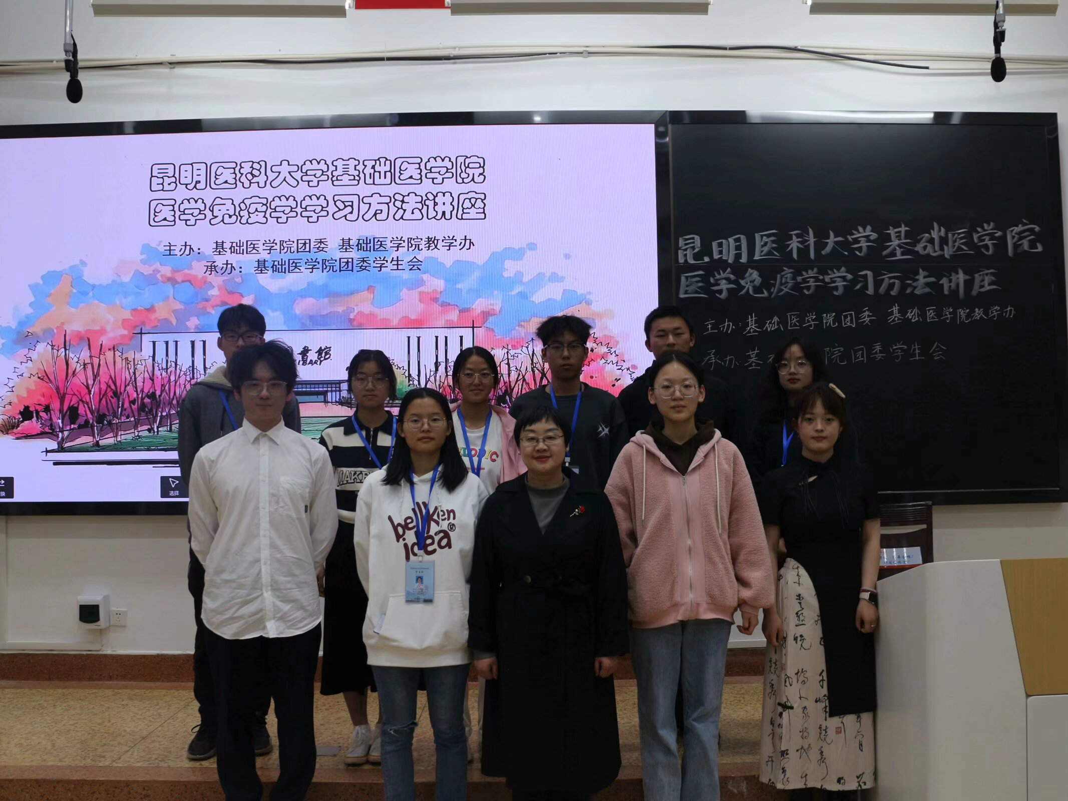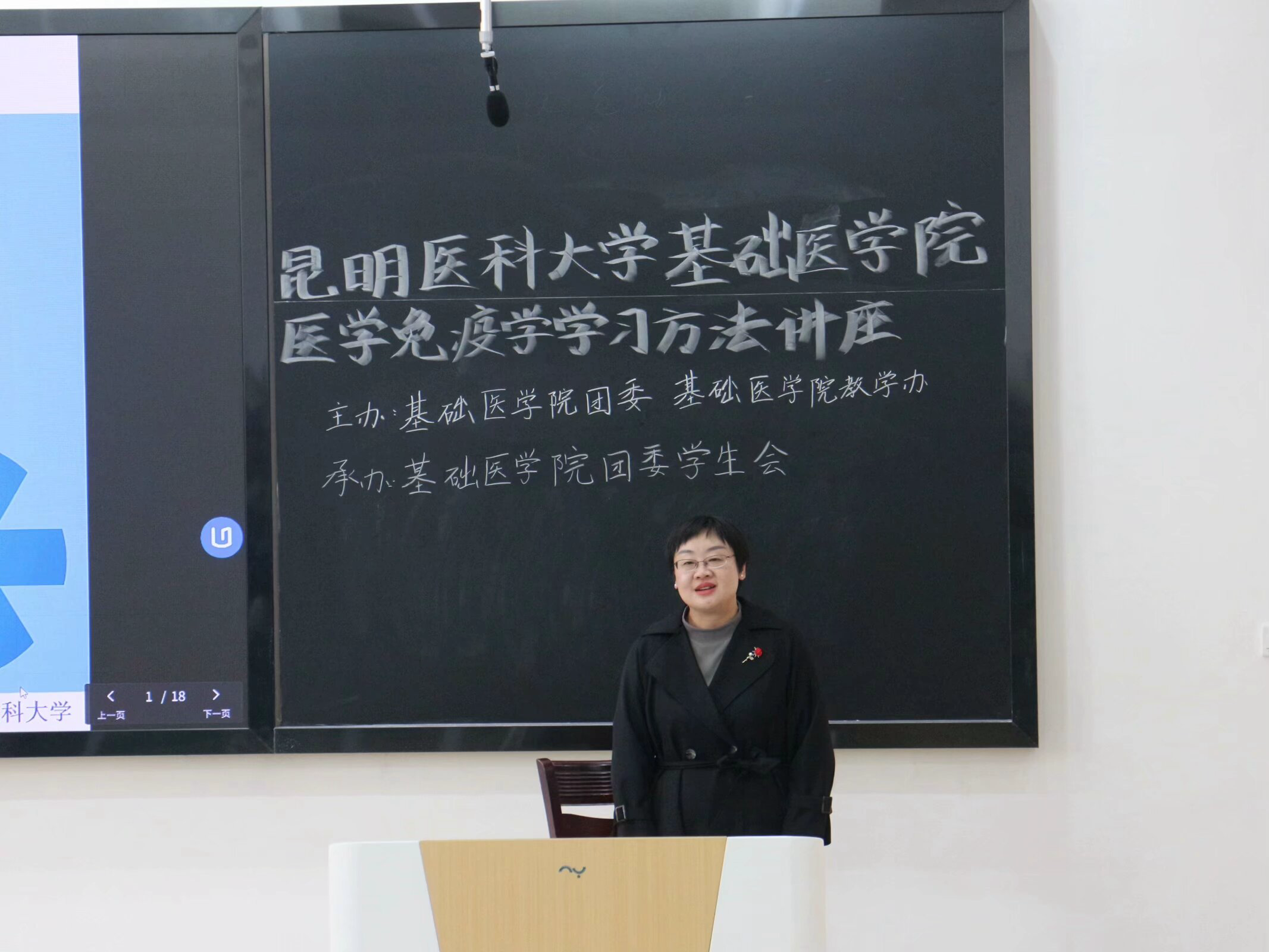 在如今的时代背景下,免疫学作为连接人体健康与外部环境的桥梁,在预防疾病、治疗感染以及提高生活质量等方面的重要性逐渐凸显。因此,免疫学在同学们的学习、生活中的位置不断攀升,针对同学们对本门学科的困惑和疑问,基础医学院教学办、基础医学院团委学生会在2024年3月21日下午18点30分于6304举办了医学免疫学学习方法讲座。本次讲座邀请了基础医学院病原生物学与免疫学系的李冰雪老师和2021级临床医学三大班王雨竹同学针对免疫学知识为同学们答疑解惑。