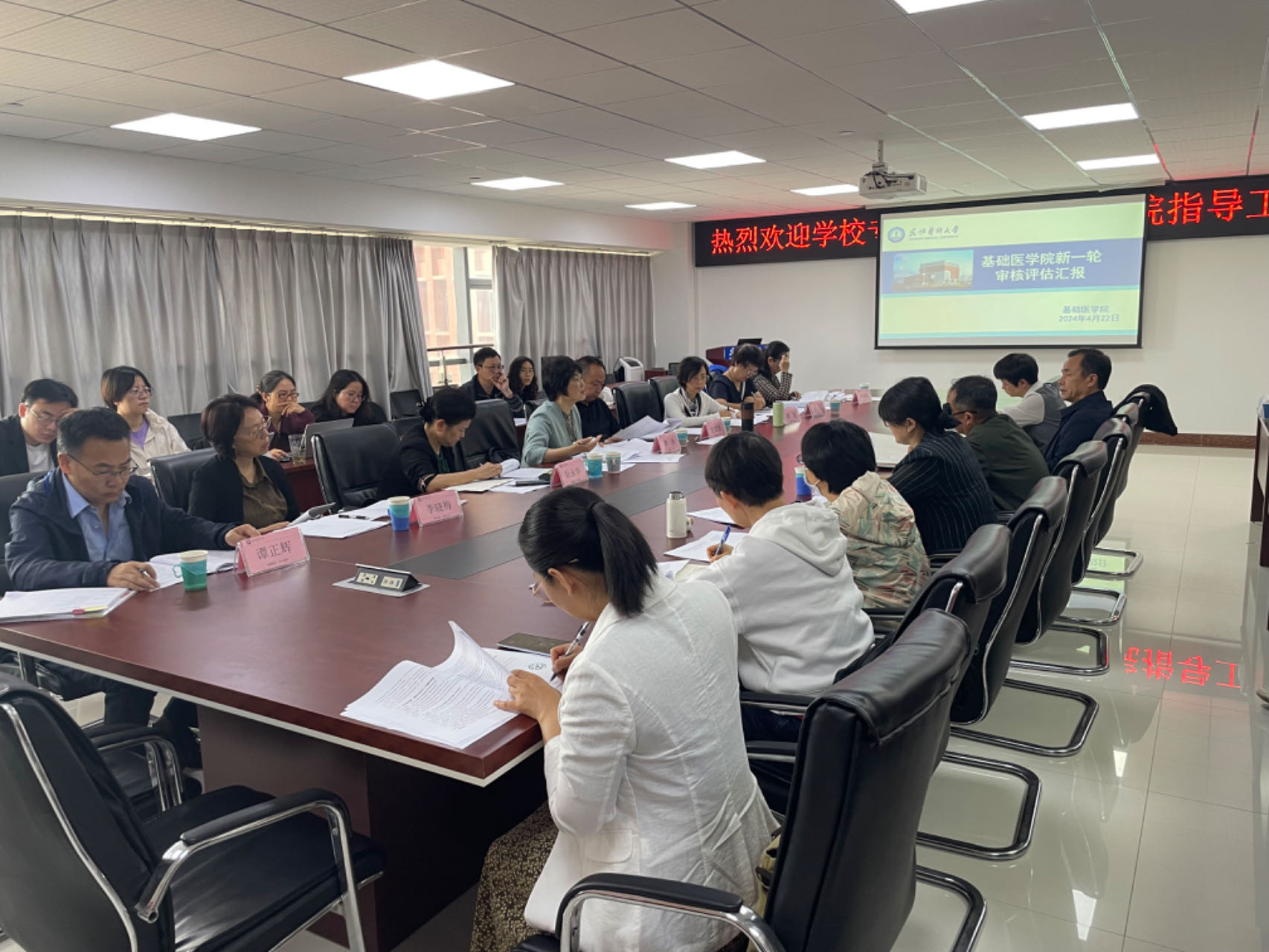 按照学校审核评估工作领导小组评建工作办公室工作安排,4月22日上午,以李燕教授为组长的检查专家组一行8人到基础医学院开展审核评估评建工作专项检查工作,基础医学院党政领导、各办公室主任、和各系/中心主任、教学秘书参加了检查活动。