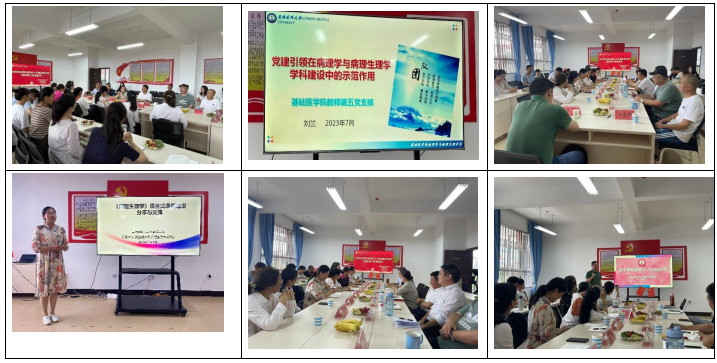 随后,双方教师进行了座谈交流。基础医学院教师第五党支部书记刘兰同志首先以《党建引领在病理学与病理生理学学科建设中的示范作用》为主题,从党支部建设工作出发,谈了党建工作如何在学科建设中发挥示范作用,如何联系党内和党外优秀知识分子,共同促进学科建设和发展。之后,基础医学院王茜和谭恒两位老师分别就《混合式课程建设》、《医学课程思政》进行交流,楚雄医专老师也从党建工作体会、教学过程中的困难和解决措施等进行了分享。