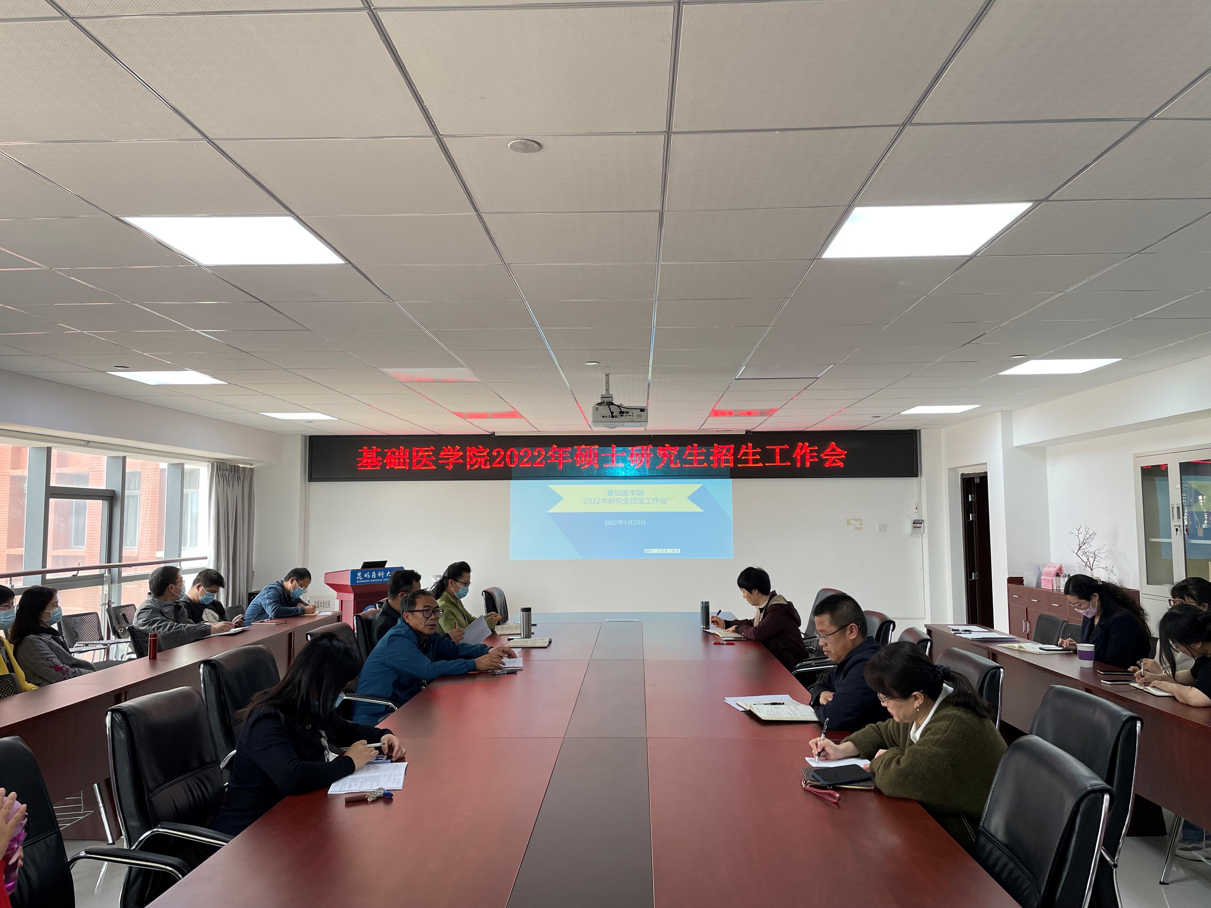 3月23日下午,基础医学院召开2022年硕士研究生招生复试工作会,学院全体党政领导、招生导师、复试秘书、技术秘书、视频监考员和各党支部书记参加会议,招生复试工作会分两个阶段进行。