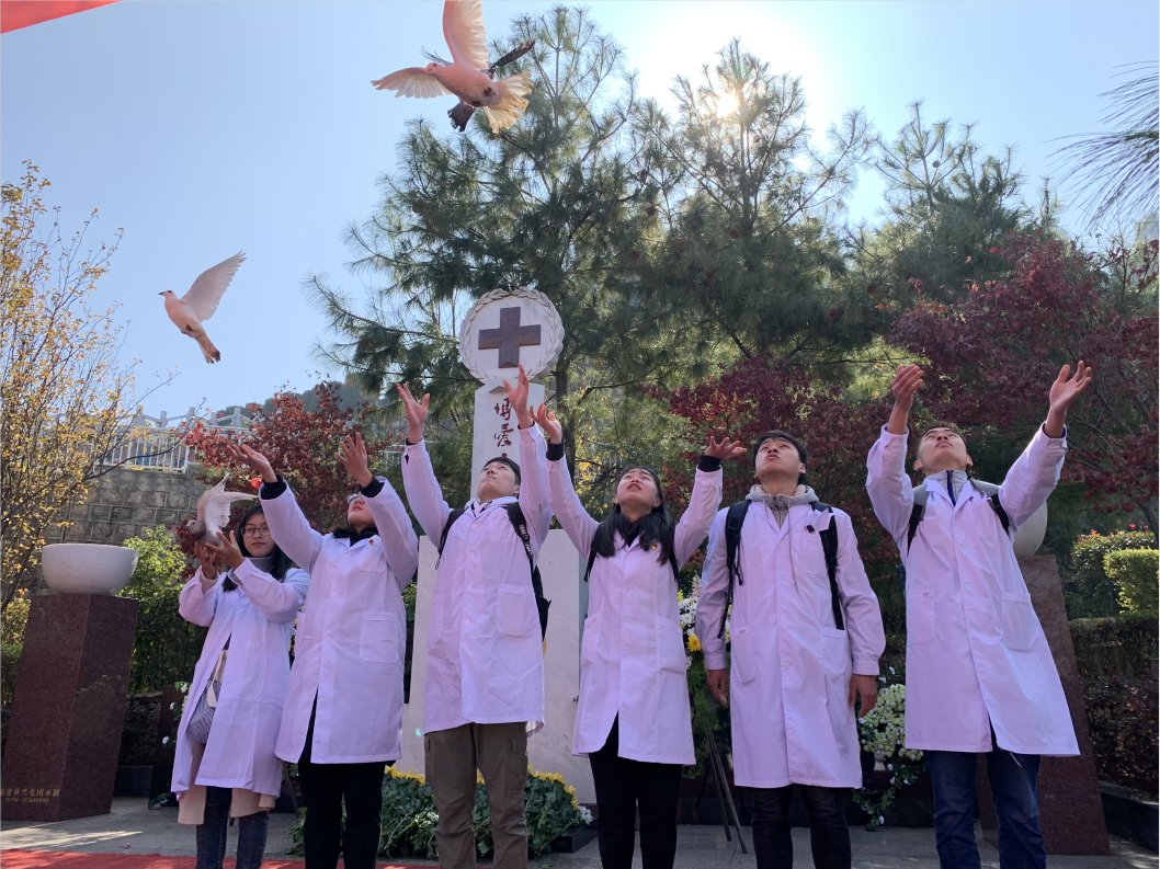 在“云南遗体捐献者纪念碑”前,米兰milan官方网站基础医学院师生,通过重温“希波克拉底誓言”(医学生誓言)、朗诵诗歌《用爱延续生命的美丽》、敬献鲜花、放和平鸽等多种方式表达着对遗体捐献者的尊敬和无限怀念之情。