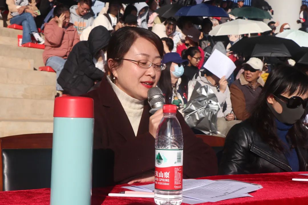 在比赛中,每个班的同学都竭尽全力将本班的优势最大程度展现出来,他们彼此竞争又彼此加油打气。大家朝气蓬勃的精神风貌和积极进取的生活态度将严冬的寒意驱散,留下的是大家那张青春活力的笑脸。在大赛接近尾声之时,全体在场领导老师和同学合唱的一曲《我和我的祖国》体现了广大师生深深的爱国情怀,而旋律悠扬的《稻香》则是我基础学子激情昂扬,积极阳光的见证。