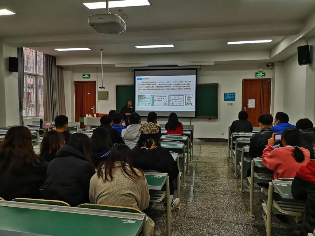 为做好我院毕业生实习就业工作,努力拓展校企合作新渠道,2021年12月4日,基础医学院诚邀云南联合视觉科技有限公司一行到米兰milan官方网站平政校区开展专场宣讲会。云南联合视觉科技有限公司宣讲人董丽蓉经理及相关工作人员、基础医学院本科毕业班辅导员赖婷婷老师、2018级信息管理与信息系统专业全体同学参加了此次宣讲活动。