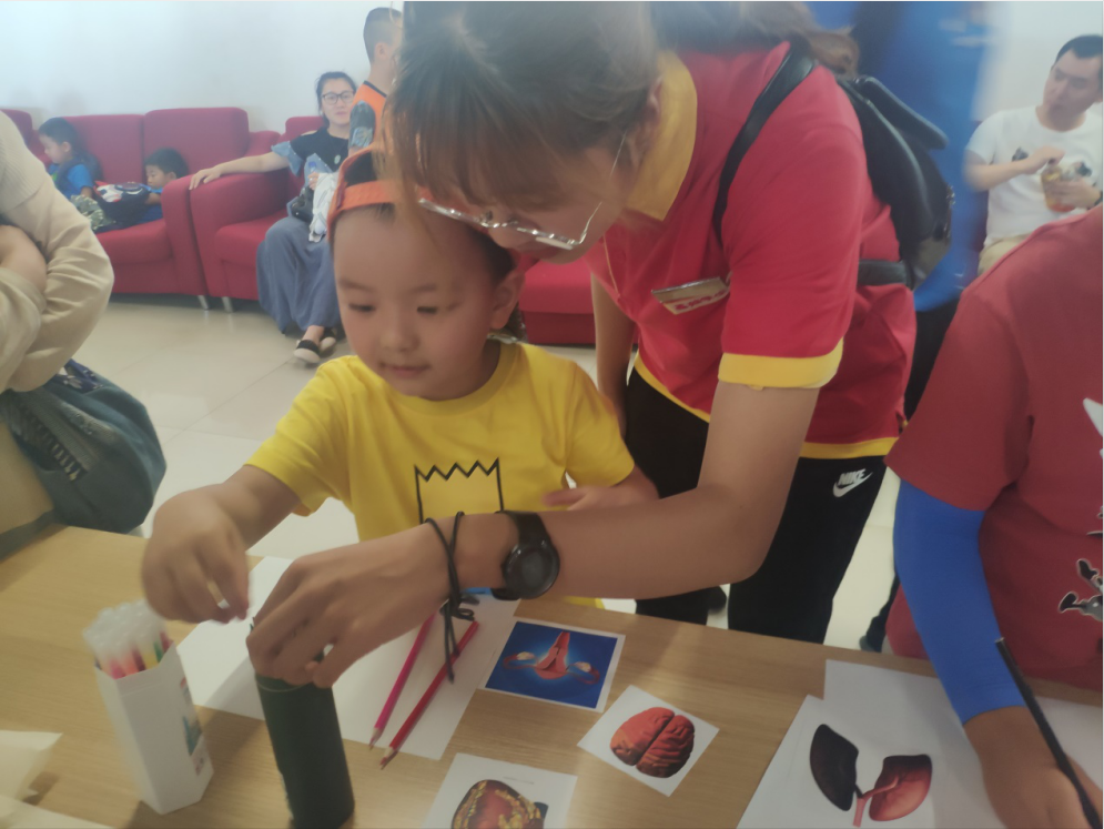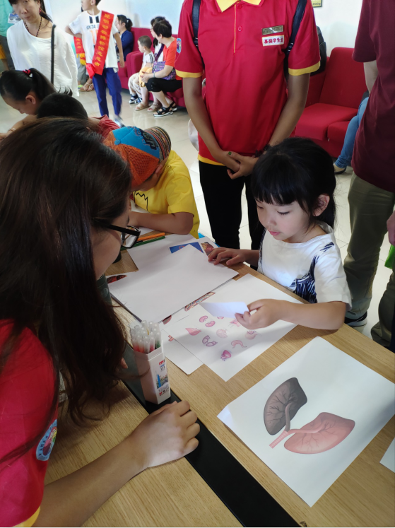 活动包括五个内容:显微镜观察细胞,制作人体器官模型,手绘人体器官,展示人体解剖绘图作品,医学动画视频的观看。首先,在各位老师引导下,各位志愿者有序地进行着场地的布置。接着志愿者们各司其职,带着小朋友们进行着相关的医学科普任务。小朋友们通过制作和绘制人体器官了解身体的构成,在实践中学习医学常识。每完成一次属于自己的创作,小朋友们脸上都展现出了满满的成就感。