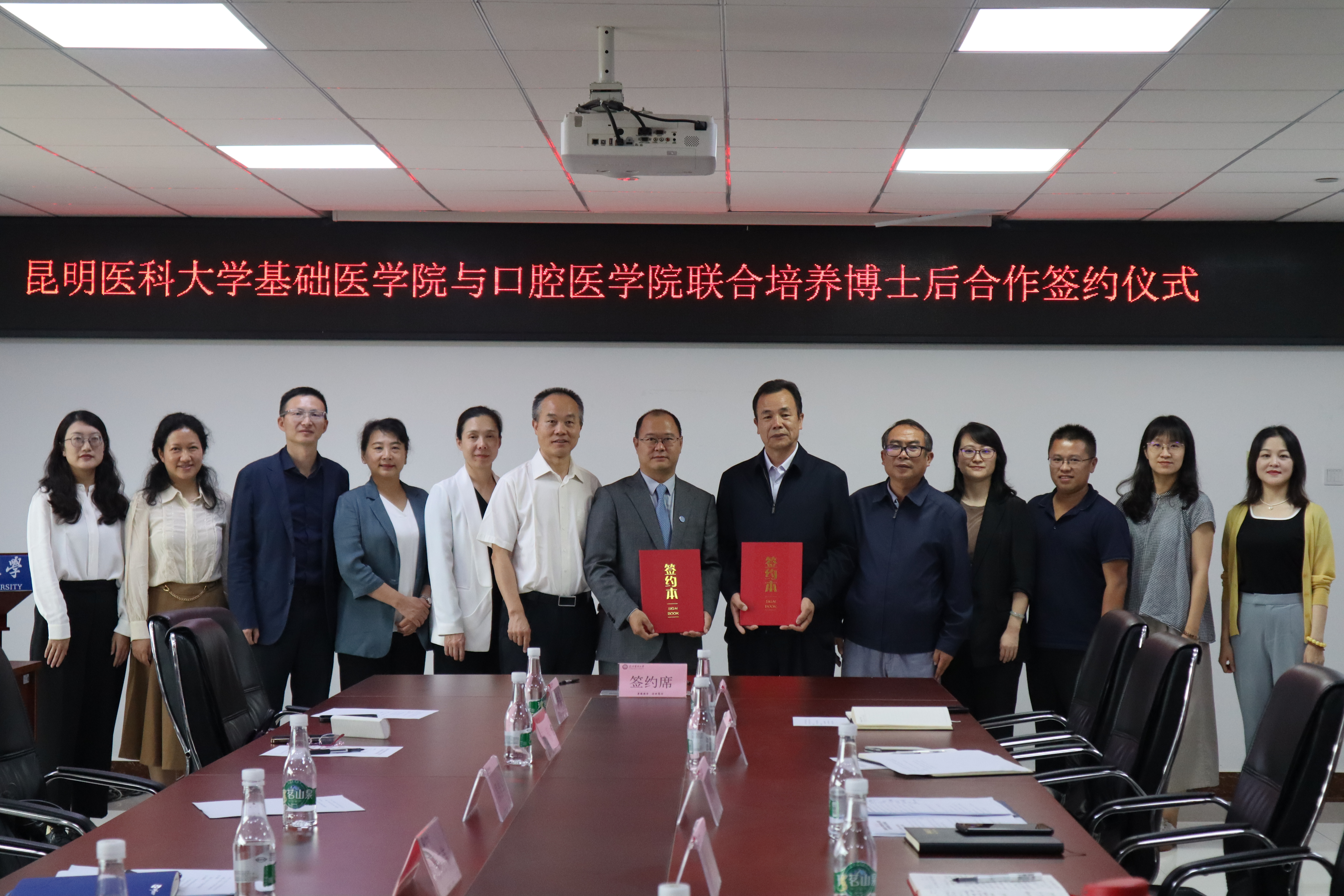 会上,基础医学院副院长邹智荣介绍了学院基本情况及基础医学国家级博士后科研流动站建设情况,口腔医学院党委书记罗应伟介绍了口腔医学院的发展历程及云南省口腔医学重点实验室发展现状,双方就博士后联合培养问题展开积极探讨并就进一步拓展合作新方向、探索合作新模式进行深入交流。最后基础医学院副院长邹智荣与口腔医学院院长郭维华代表学院双方签署了合作协议书。