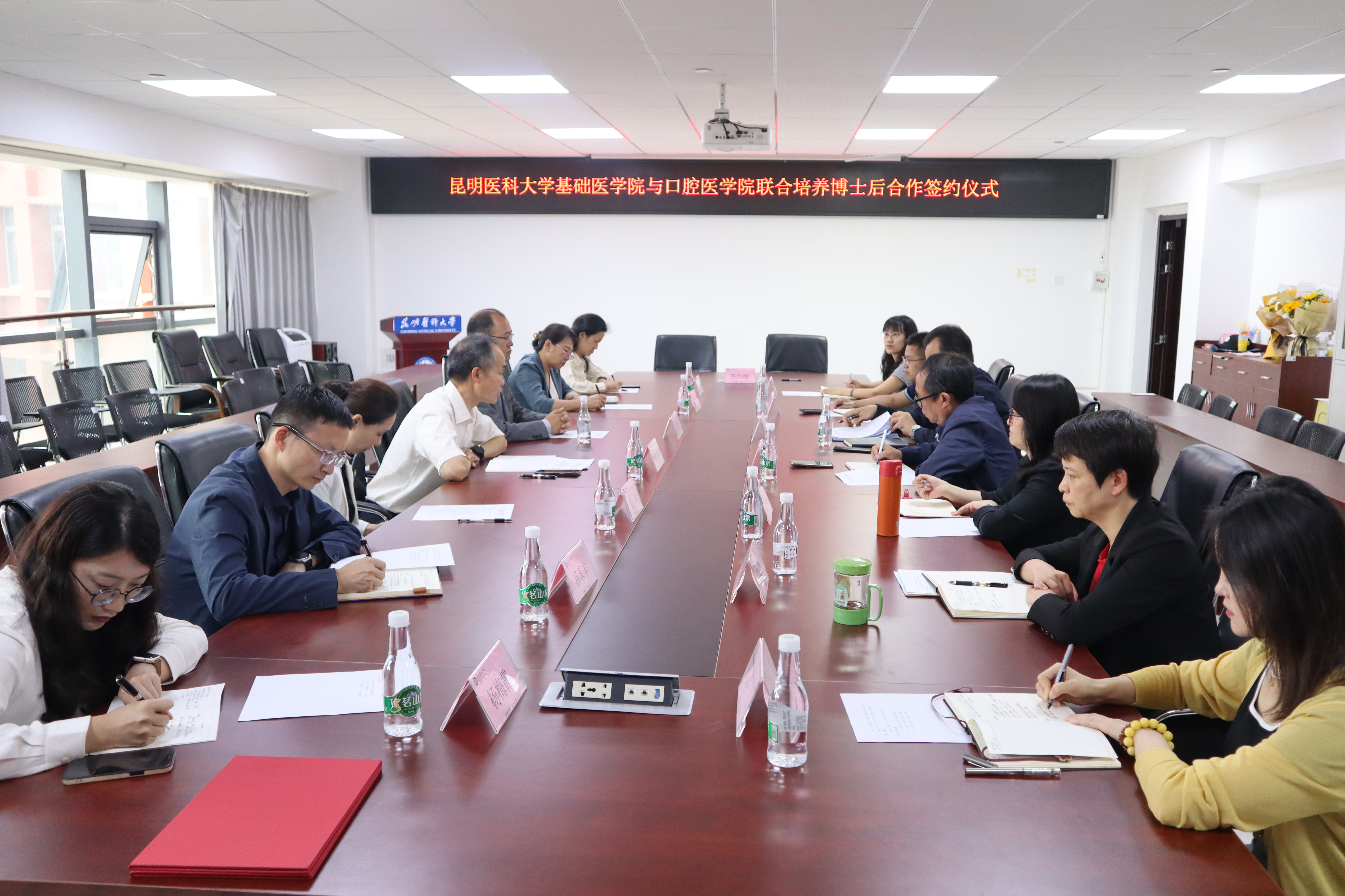 7月2日,米兰milan官方网站基础医学院与口腔医学院联合培养博士后合作签约仪式在基础医学楼614会议室举行,基础医学院党政领导、口腔医学院党政领导、云南省口腔医学重点实验室负责人和两个学院办公室相关负责人出席签约仪式。