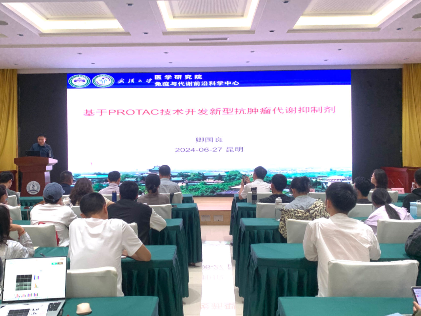 武汉大学卿国良教授以“基于PROTAC技术开发新型抗肿瘤代谢抑制剂”为题,介绍了肿瘤的标志性特征,包括细胞增殖失控、代谢重编程等。着重讲解了代谢重编程如何调控细胞增殖,以及如何通过寻找肿瘤特异性代谢弱点来开发新型抗肿瘤药物。卿国良教授详细阐述了MYC-SEC复合体在驱动转录延伸放大促肿瘤发生发展中的重要作用,以及MYC如何调控NOX4-ROS和PLK1-NUDT1通路稳态平衡。这些发现为理解肿瘤发生发展的分子机制提供了重要依据。卿国良教授指出,PROTAC技术为“不可成药”靶点如RAS提供了新的解决方案,打破了传统药物研发的局限性。