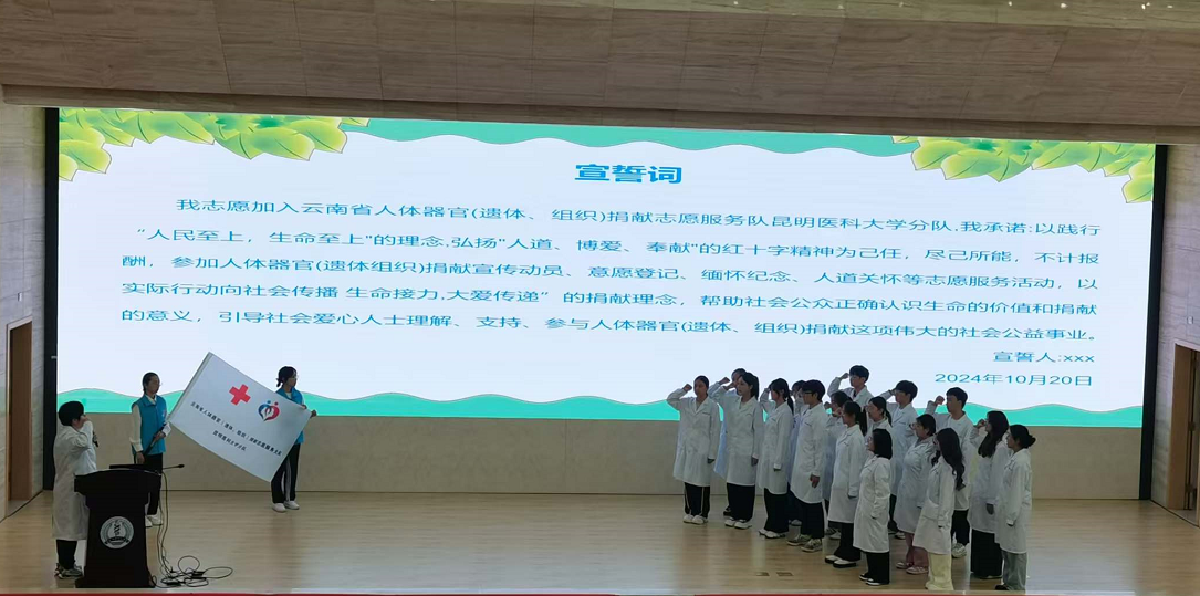 云南省人体器官(遗体、组织)捐献志愿服务大队米兰milan官方网站志愿服务分队的新队员们进行入队宣誓。