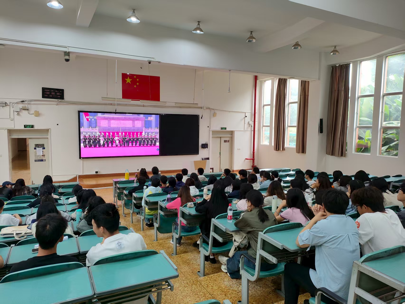 2025年9月3日上午9点,基础医学院组织师生代表集中收听收看纪念中国人民抗日战争暨世界反法西斯战争胜利80周年大会实况直播。学院党政领导和师生代表分别在三个分会场集体收看大会直播,同时各党支部组织师生通过各类网络直播平台,在线收听收看。