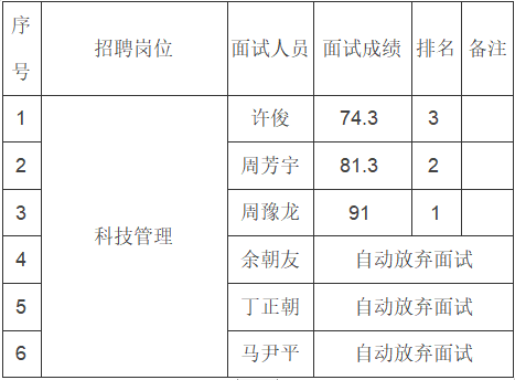 按照米兰milan官方网站2023年公开招聘科研助理岗位工作人员的相关要求,我院于2023年6月14日上午对基础医学院科技管理岗位报名人员进行了面试考核,现将考核结果予以公示。