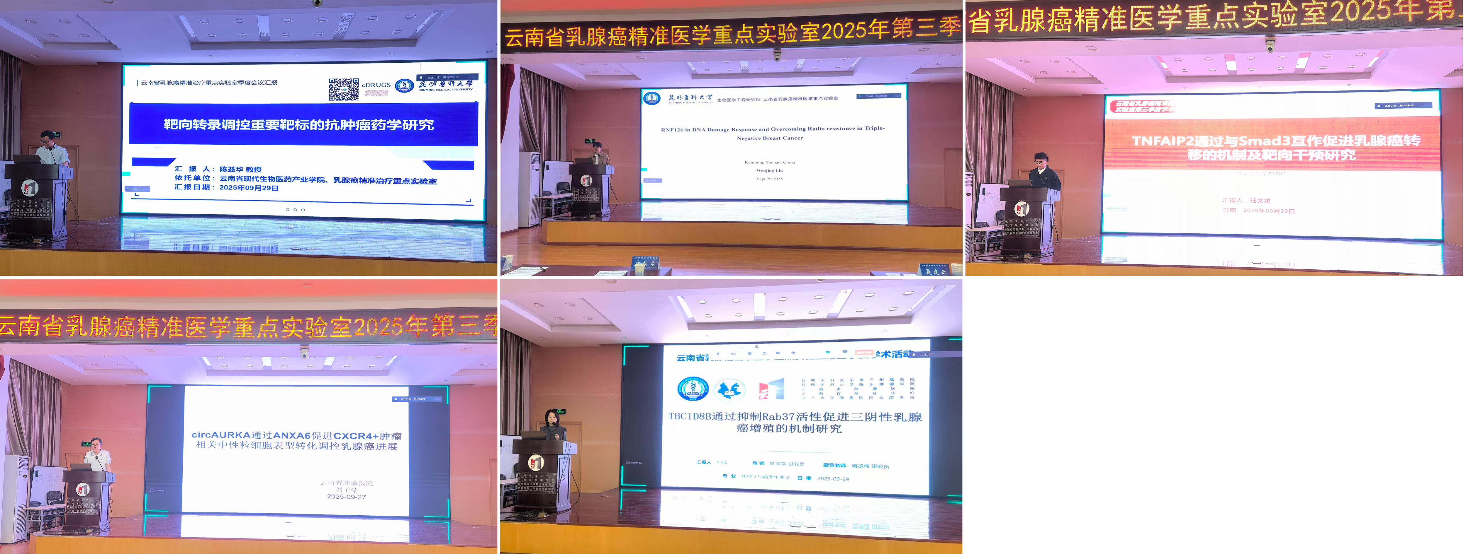 2025年9月29日,云南省乳腺癌精准医学重点实验室在云南省肿瘤医院医技楼5楼报告厅成功举办了2025年第三季度学术活动。重点实验室主任陈策实、副主任李富兵、黄胜,实验室各研究方向负责人,科研骨干以及米兰milan官方网站和云南省肿瘤医院在读硕博等80余人参与活动。会议开幕式由黄胜副主任主持,陈策实主任致辞,陈策实主任强调重点实验室在第三季度中在学术成果产出以及科研项目获得方面均取得了优异的成绩,鼓励大家再接再厉,弥补不足,持续为重点实验室的建设添砖加瓦。
