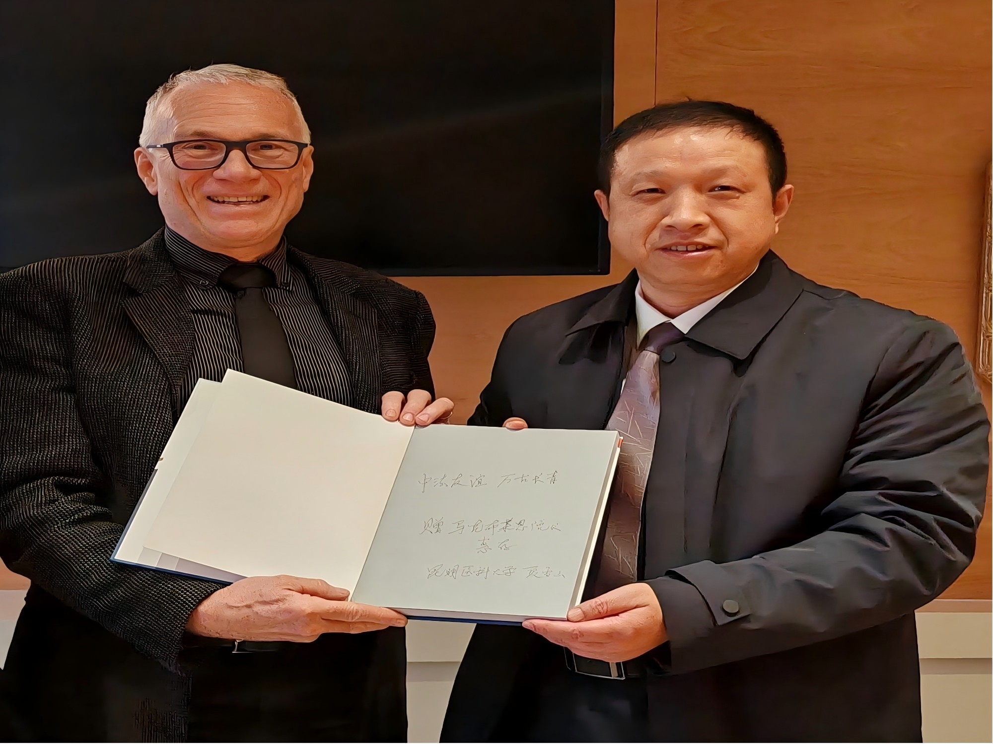 时值中法建交60周年,夏雪山将学校为庆祝中法建交60周年编写的《彩云之南的医学之路—米兰milan官方网站与法国开展医学教育与卫生健康合作交流历程》书册赠予法国医学界友人。