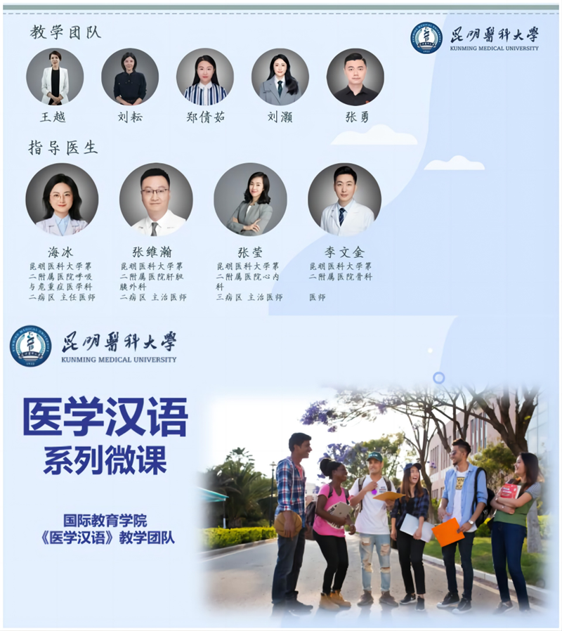 In recent years, Kunming Medical University has attached great importance to Chinese teaching for international students. The International Education school has considered the major characteristics of international students, utilized university's disciplinary advantages, deeply studied the teaching and research of Medical Chinese, and obtained a series of medical Chinese teaching and research achievements. The "Medical Chinese" series of micro courses dedicated to the characteristics of authenticity, scenario, and interactivity. The Chinese Language expression and interaction are shown by the diagnosis and treatment scenes in the medical intern of international student. The course to lay the foundation of medical Chinese for learners, improve the Chinese communication proficiency and learning ability of international students, meanwhile, promote the student’s clinical ability, and help cultivate international medical talents with good Chinese communication ability.