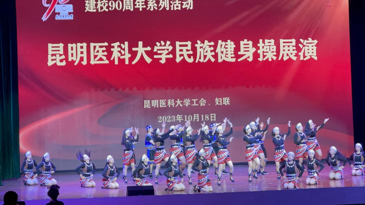 2023年10月18日晚,米兰milan官方网站民族健身操展演在呈贡校区学生会堂举行,我院组织30名师生参加展演,节目《奋进新时代 阿佤唱新歌》获得一致好评。