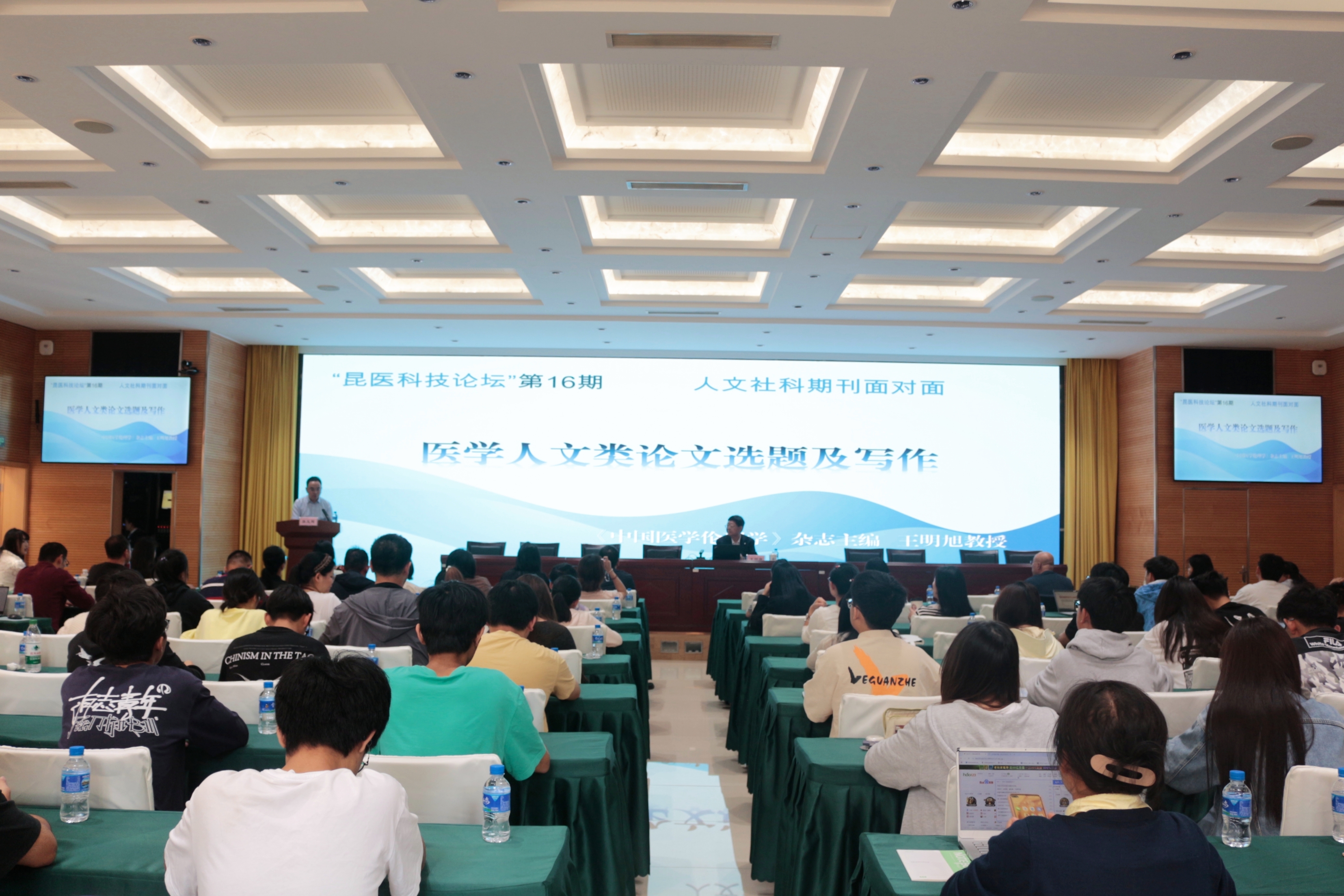 5月13日上午,为了进一步推动学校学科交叉融合、促进人文社会科学发展,搭建“人文社科期刊面对面”交流平台,“昆医科技论坛”第16期邀请《中国医学伦理学》杂志主编、西安交通大学公共卫生学院卫生改革与发展研究中心主任王明旭教授做了题为“医学人文类论文选题及写作”的专题学术讲座。讲座由学校科技处廖玉辉处长主持。