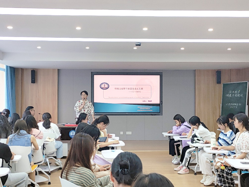 首先,高丽萍老师从“医生行医的目的是什么”“医生最大的敌人是什么”“医生最重要的本领是什么”三个问题出发,引起同学们思考,然后围绕“生前预嘱”“遗体捐赠”“安乐死”三份协议阐述了医学中的情、理、法。“生前预嘱”是情,大部分人都能接受情,“遗体捐赠”是理,大家明理但可以不接受,“安乐死”是法,是我们在医疗实践中的难题。