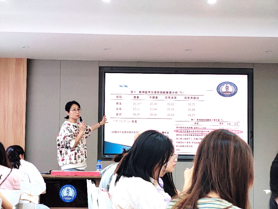 最后,高丽萍老师告诉同学们,医生行医的目的是帮助患者减少痛苦,医生最大的敌人是自身的冷漠,医生最重要的本领是共情能力。