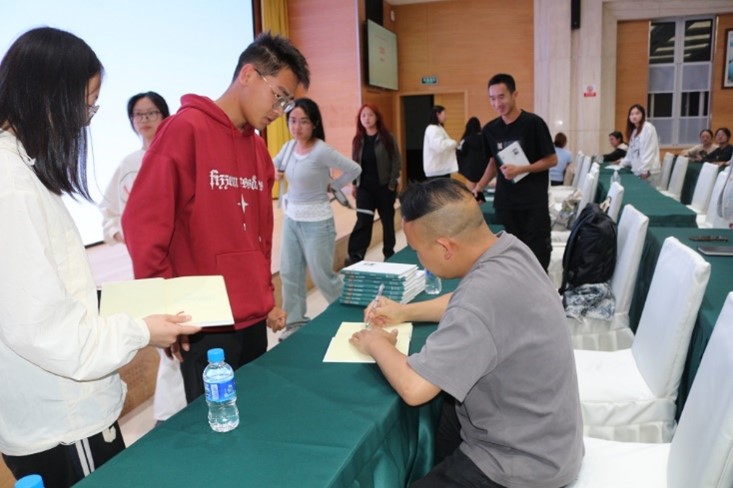 最后,安磊对分享会进行了总结,并向讲座同学赠送王单单老师随笔《借人间避雨》,王老师现场为同学们签字。