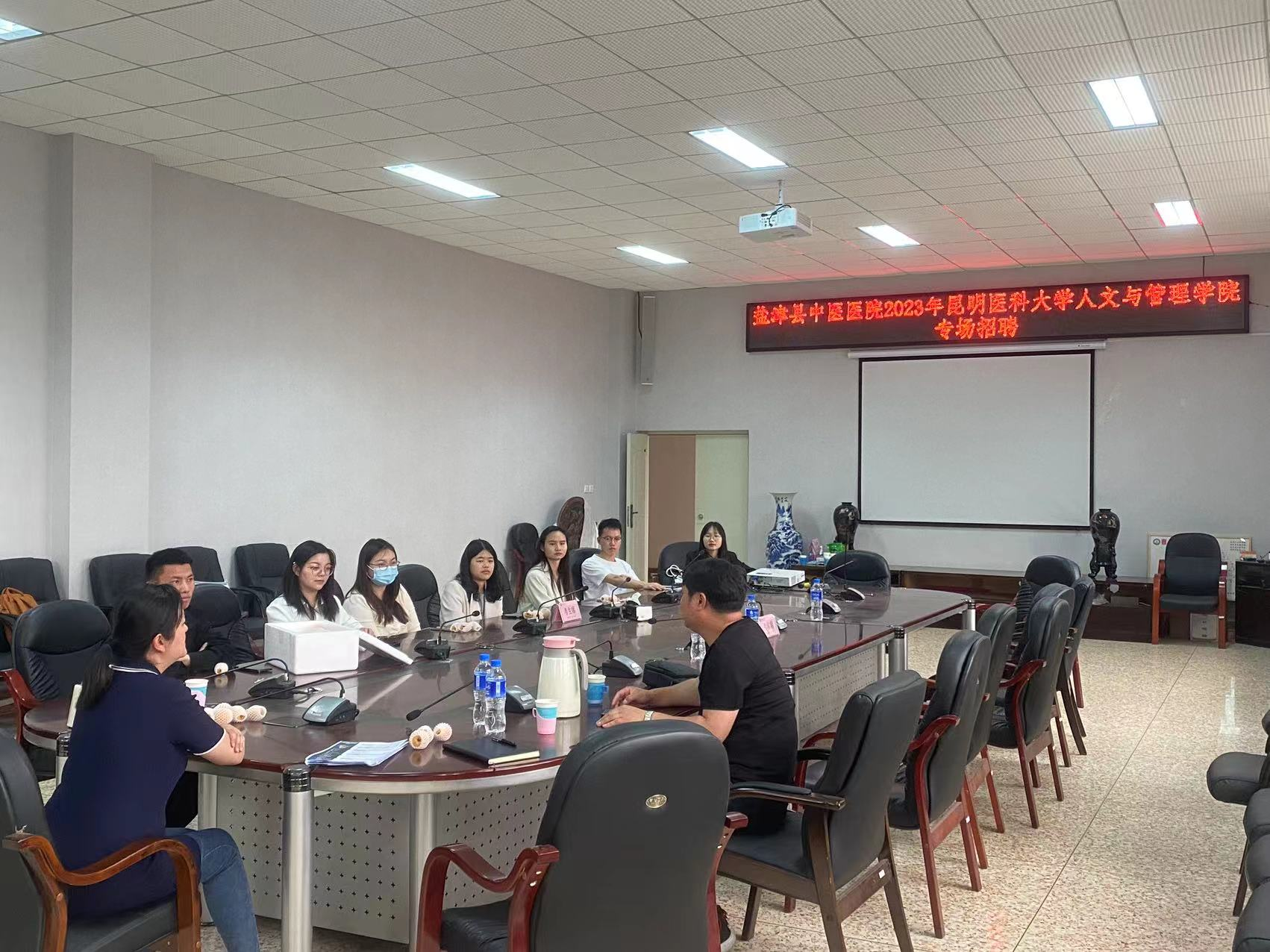 4月24日,盐津县中医医院到人文与管理学院考察交流并开展专场招聘。人文与管理学院党政领导和盐津县中医医院领导就人才培养、社会服务等工作进行了座谈交流。双方相关人员参加了座谈会。