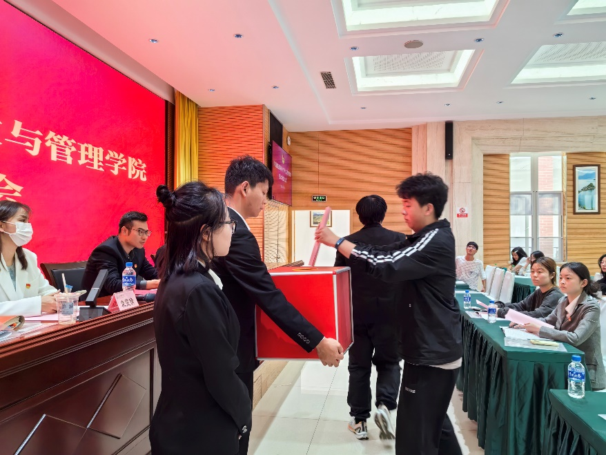 接着,李南毅代表学院共青团第五届委员会向大会作《守初心凝聚青年力量 秉赤诚奋楫青春远航 挺膺担当书写人文与管理学院十五五建设新篇章》报告和团费收缴情况报告。