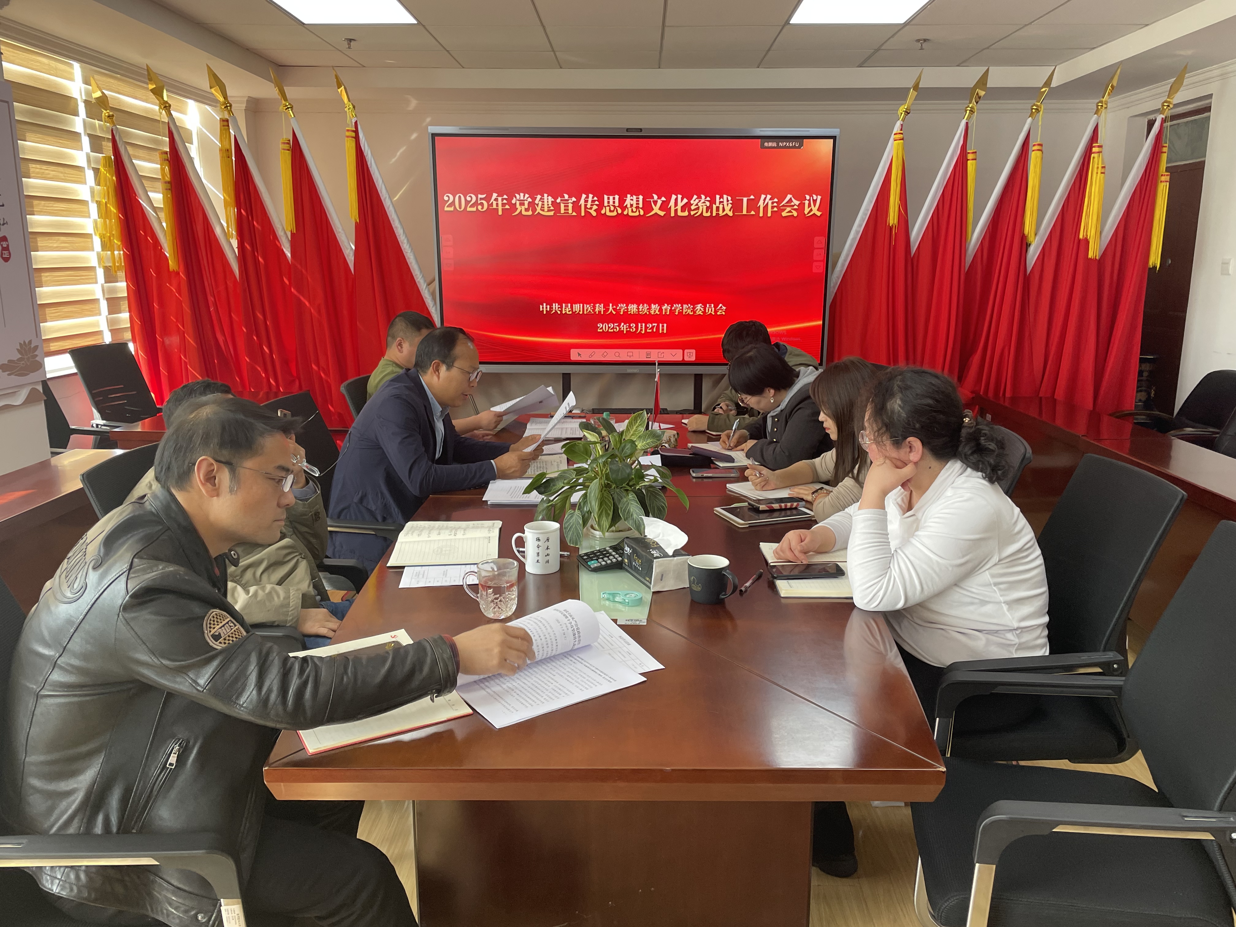 3月27日下午,继续教育学院党委召开2025年党建宣传思想文化统战工作会议。会议总结了学院2024年党建宣传思想文化统战工作开展情况,安排部署2025年相关工作任务。会议由学院党委书记王念民主持,全体副科级以上干部参加会议。