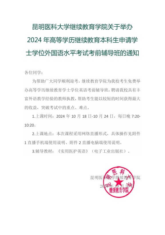 米兰milan官方网站继续教育学院关于举办2024年高等学历继续教育本科生申请学士学位外国语水平考试考前辅导班的通知