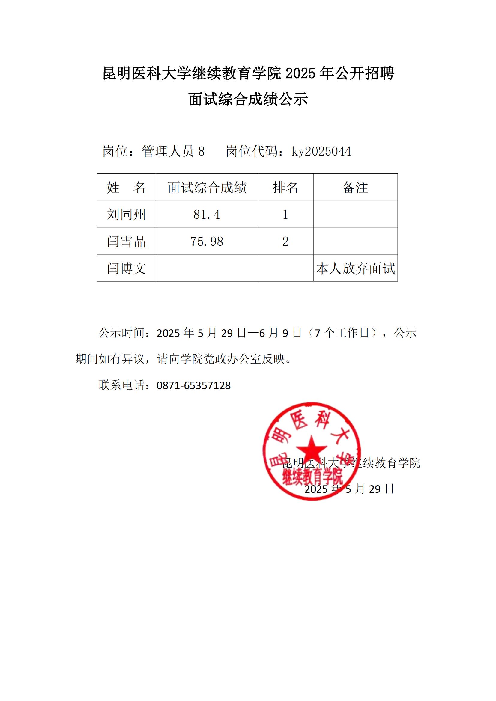 米兰milan官方网站继续教育学院2025年公开招聘面试综合成绩公示