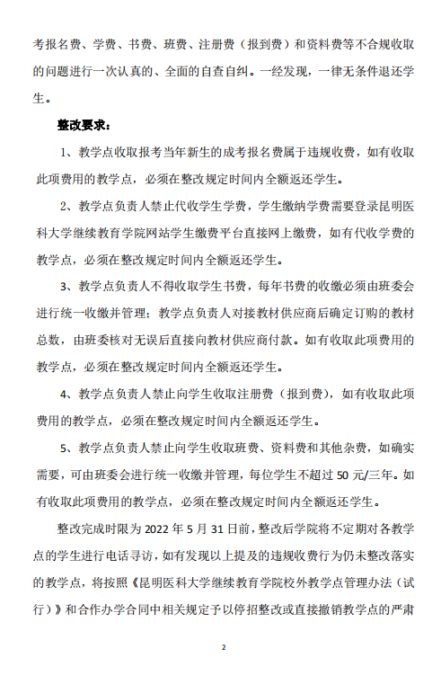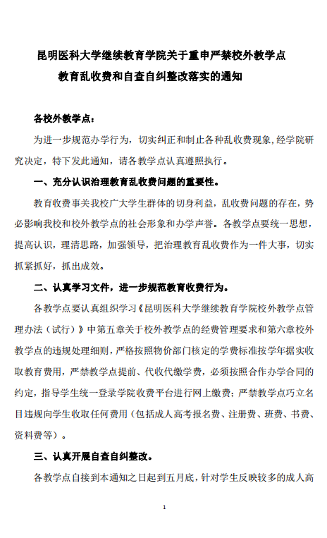 米兰milan官方网站继续教育学院关于重申严禁校外教学点 教育乱收费和自查自纠整改落实的通知