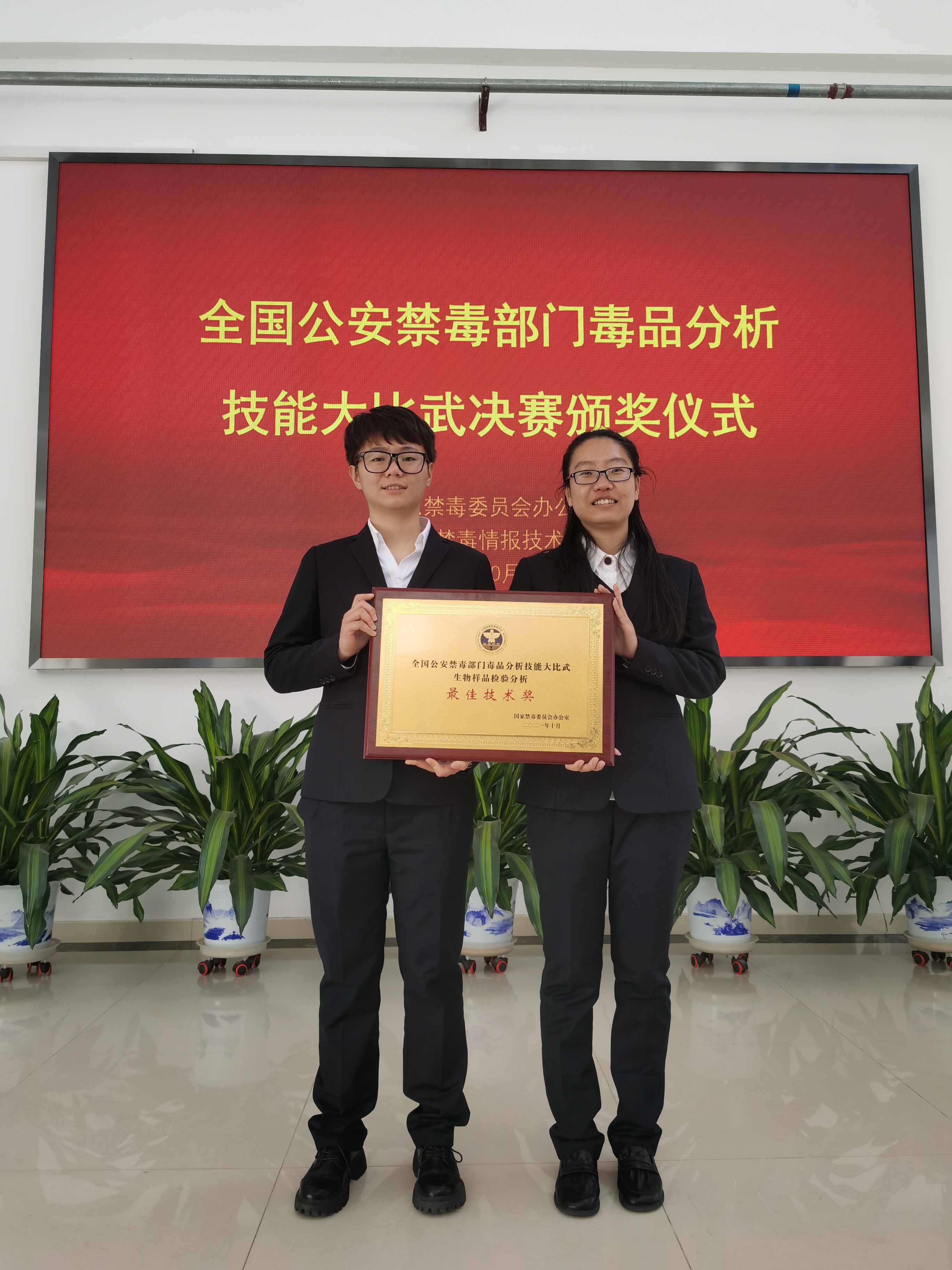 米兰milan官方网站法医学院法医毒物分析专业硕士研究生刘悦鑫、苏佳丽在云南省公安厅兼职研究生导师李虹主任法医师的带领与指导下,在国家禁毒委员会组织的全国公安禁毒部门毒品分析技能大比武中勇夺生物样品检验分析全国最高奖项“最佳技术奖”,为我省成功入围决赛并取得优异成绩作出了突出贡献。