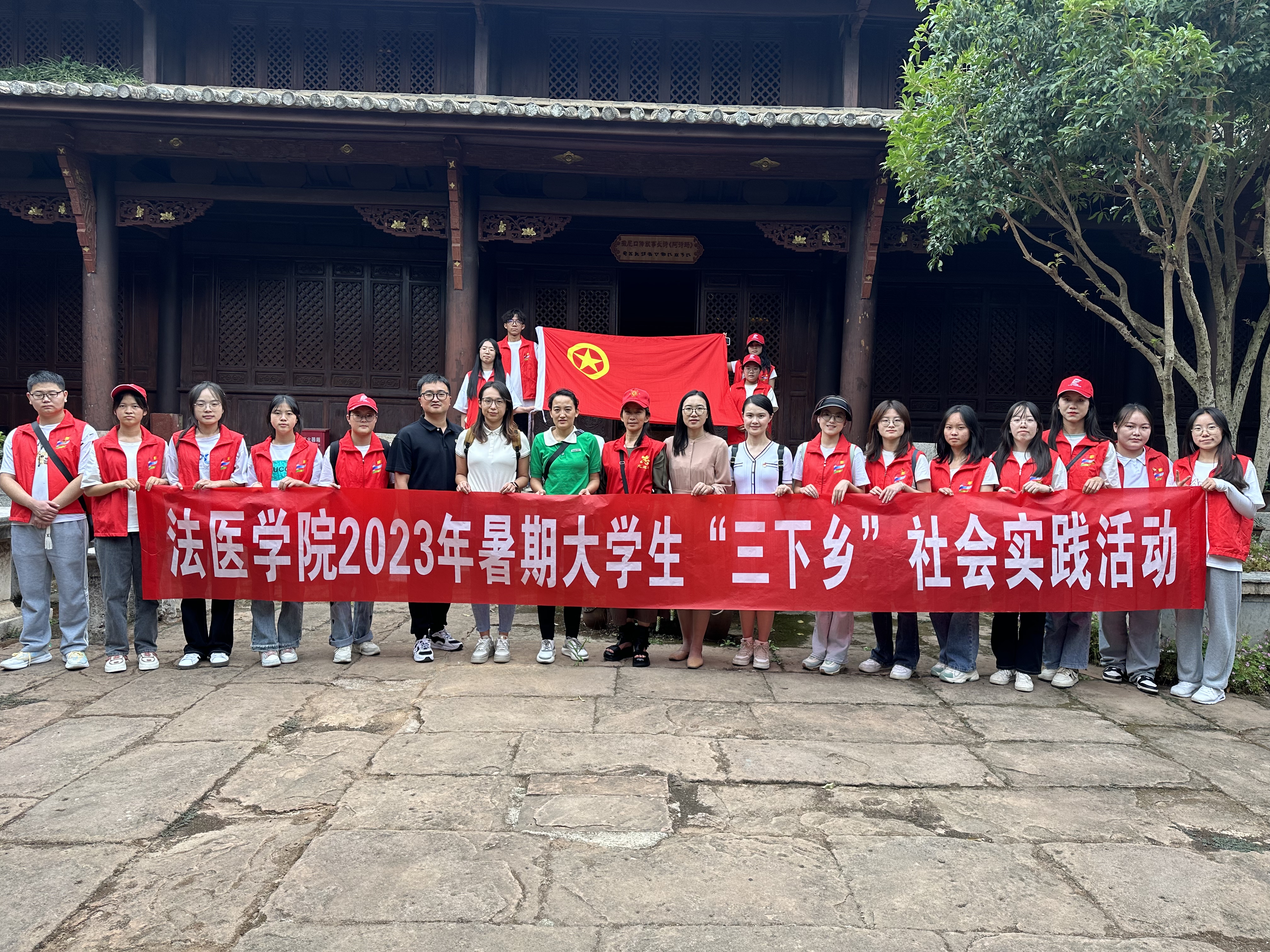 为深入学习贯彻习近平新时代中国特色社会主义思想,在主题教育开展期间切实将学习成果转化为“强党性”“重实践”的实际行动,教育引领学生在助力乡村振兴的社会课堂中认识国情,拓展视野、砥砺品格,不断提高利用专业所学服务社会的本领和能力,充分激发昆医青年在谱写中国式现代化昆医篇章中挺膺担当,米兰milan官方网站法医学院团委组织师生19人于2023年7月18日赴石林县开展了“法护未来-助力乡村振兴”暑期三下乡社会实践活动。实践团队由法医学院团委书记申莹、团委副书记2022级法学班班主任周雅婷、2022级法医班班主任法医系教师杨根梦三位老师带队,2022级法医、法学班遴选了16名学生作为团队成员参加活动。