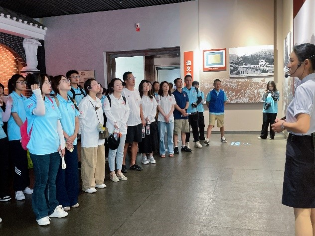 第三站,实践团队抵达遵义会议会址,接受党史和红色精神教育。 队员们聆听讲解并通过图片和实物展品,学习革命历史,传承革命精神。