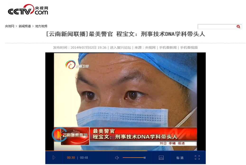 1.[云南新闻联播]最美警官 程宝文:刑事技术DNA学科带头人