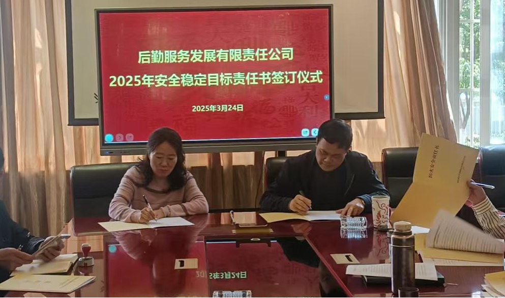 会议尾声,贺晓东、杨俊芬分别代表资产公司与后勤公司与各部门负责人签订了《2025年安全稳定责任书》和《2025年消防安全责任书》。