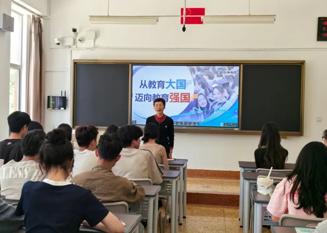 徐绍琼以“从教育大国迈向教育强国”为主题,围绕“为什么要建设教育强国”“如何建设教育强国”以及“教育强国的发展现状”三个方面进行深入讲解,用通俗易懂的语言,系统阐释了教育、人才与科技三者之间的内在逻辑关系。授课中,徐绍琼结合跨文化教学案例,从国别比较的视角,深入剖析了创新精神在建设教育强国中的关键作用,进一步拓宽了学生的国际视野,发挥了思政课堂的育人实效。