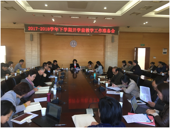 3月1日下午,学校在校务管理中心302会议室召开2017-2018学年下学期开学前教学准备工作会。会议由学校副校长李燕主持,学生工作处、资产管理处、现代教育技术中心、后勤服务发展中心及各学院、附属医院参加了会议。