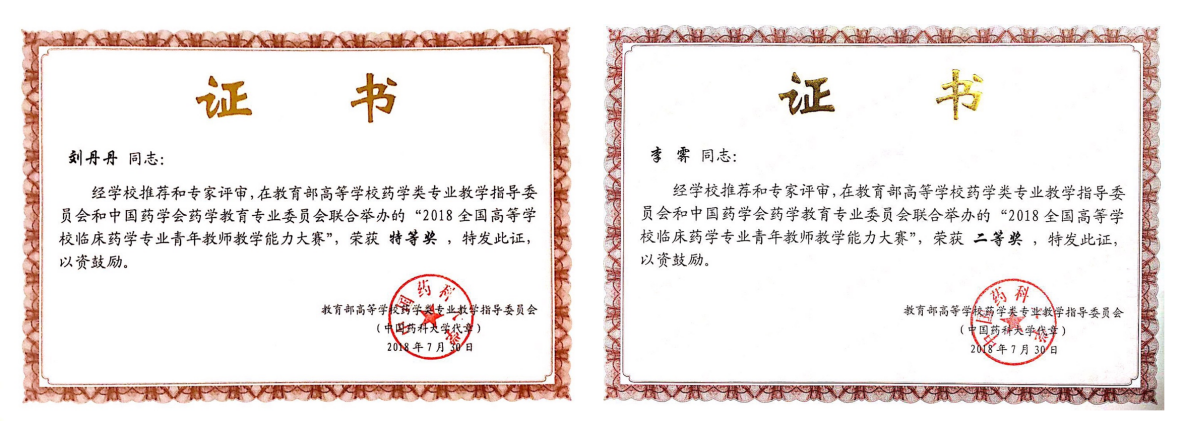 通过前一阶段教学能力大赛初赛,从浙江大学、四川大学、中国药科大学、沈阳药科大学等34所高校78名教师中遴选出来25名教师进入决赛。经过激烈角逐,最终我校药学院教师刘丹丹获得特等奖,李霁获得二等奖,这是我校教师第二次在同规格比赛中获得特等奖。