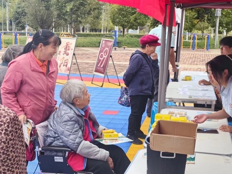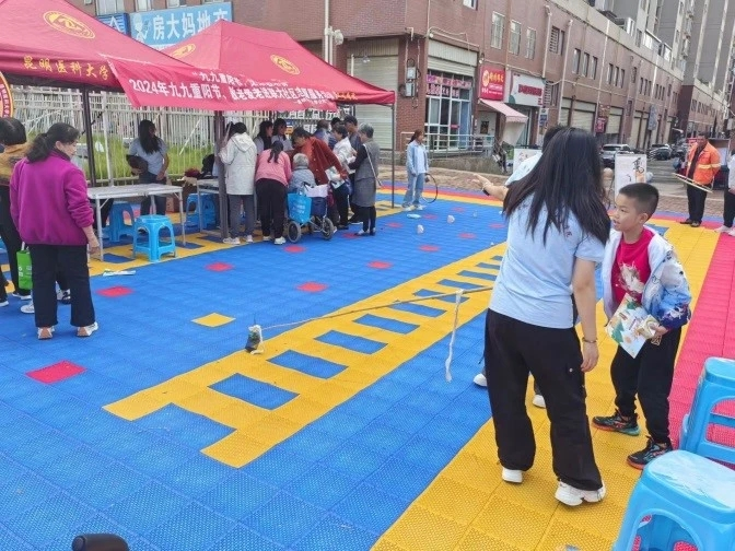 活动现场,通过设置重阳节宣传展板,给社区居民们发放重阳节宣传册,开展“插茱萸”“祝福在我手”“重阳套圈”“消灭疾病”“重阳大转盘”等有趣小游戏,为社区居民送上了欢乐和真诚的祝福,更是让他们感受到了关爱和温暖。