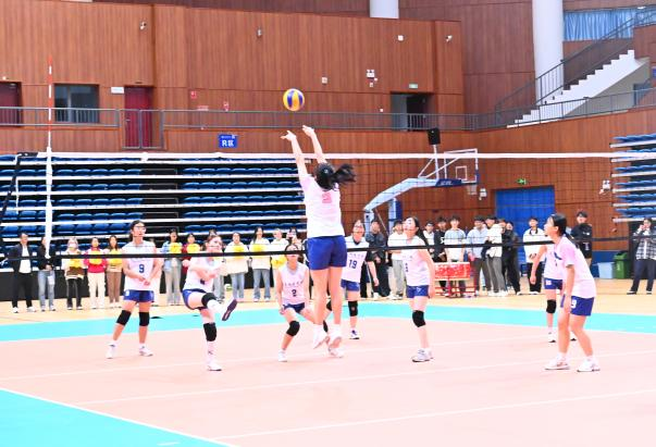 面对强劲的对手,公卫女排丝毫不退,接球跌倒也迅速起身,根据场上局势作出调整。