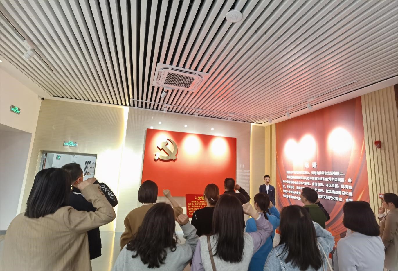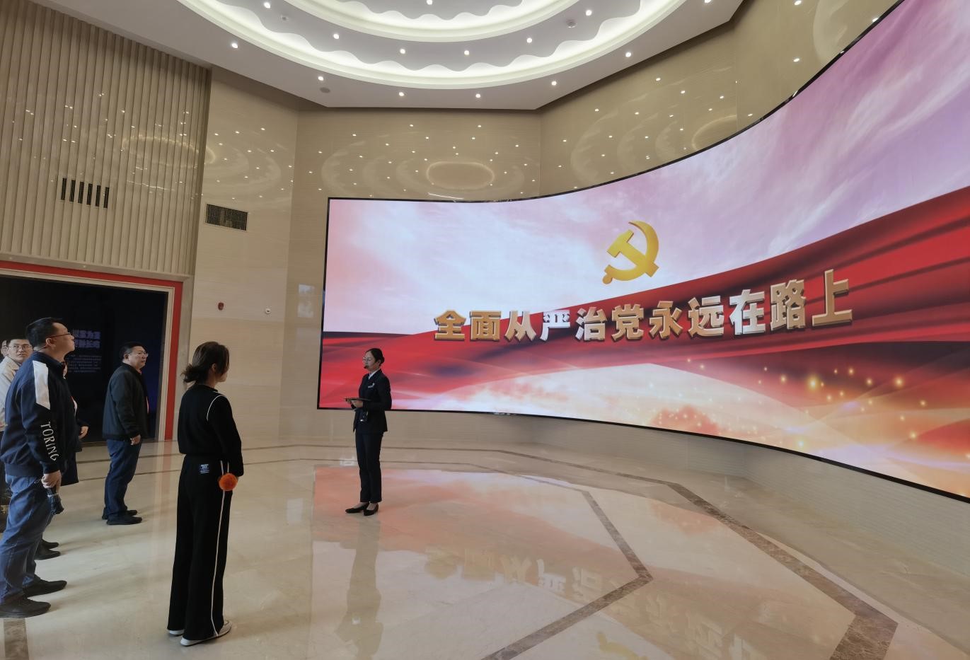走进教育基地,“全面从严治党永远在路上”十一字赫然出现在大屏幕上,伴随着总书记坚定的话语,全体党员同志开始了学习。在讲解员带领下,依次到“警示篇·以案为鉴,警钟长鸣”、“防治篇·纪法铁规,敬畏知止”和“铸魂篇·坚守信仰,永葆本色”三个主题展厅学习。