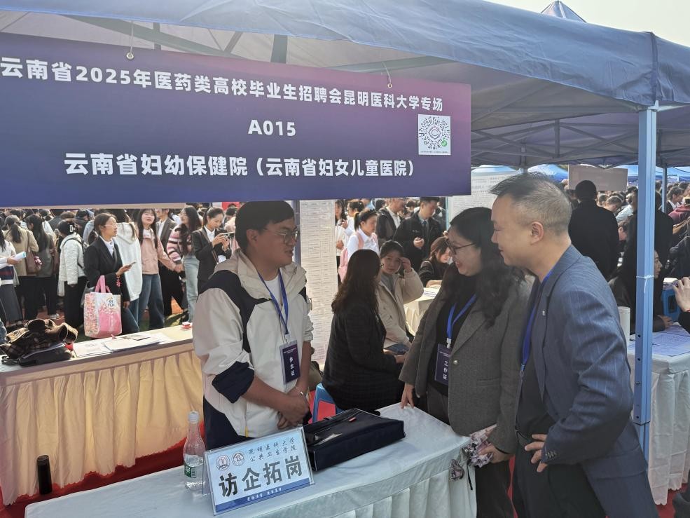 2025年3月14日,米兰milan官方网站公共卫生学院党委副书记、副院长秦家碧带队参加云南省2025年医药类高校毕业生招聘会米兰milan官方网站专场并开展访企拓岗。