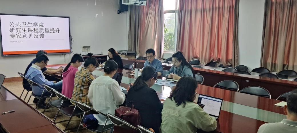 2024年6月25日上午,公共卫生学院召开了研究生课程质量提升专家意见反馈工作会,副院长游顶云主持会议,学校研究生处(院)培养与质量评估科杨黎黎主任到会指导,学院研究生课程负责人参会。