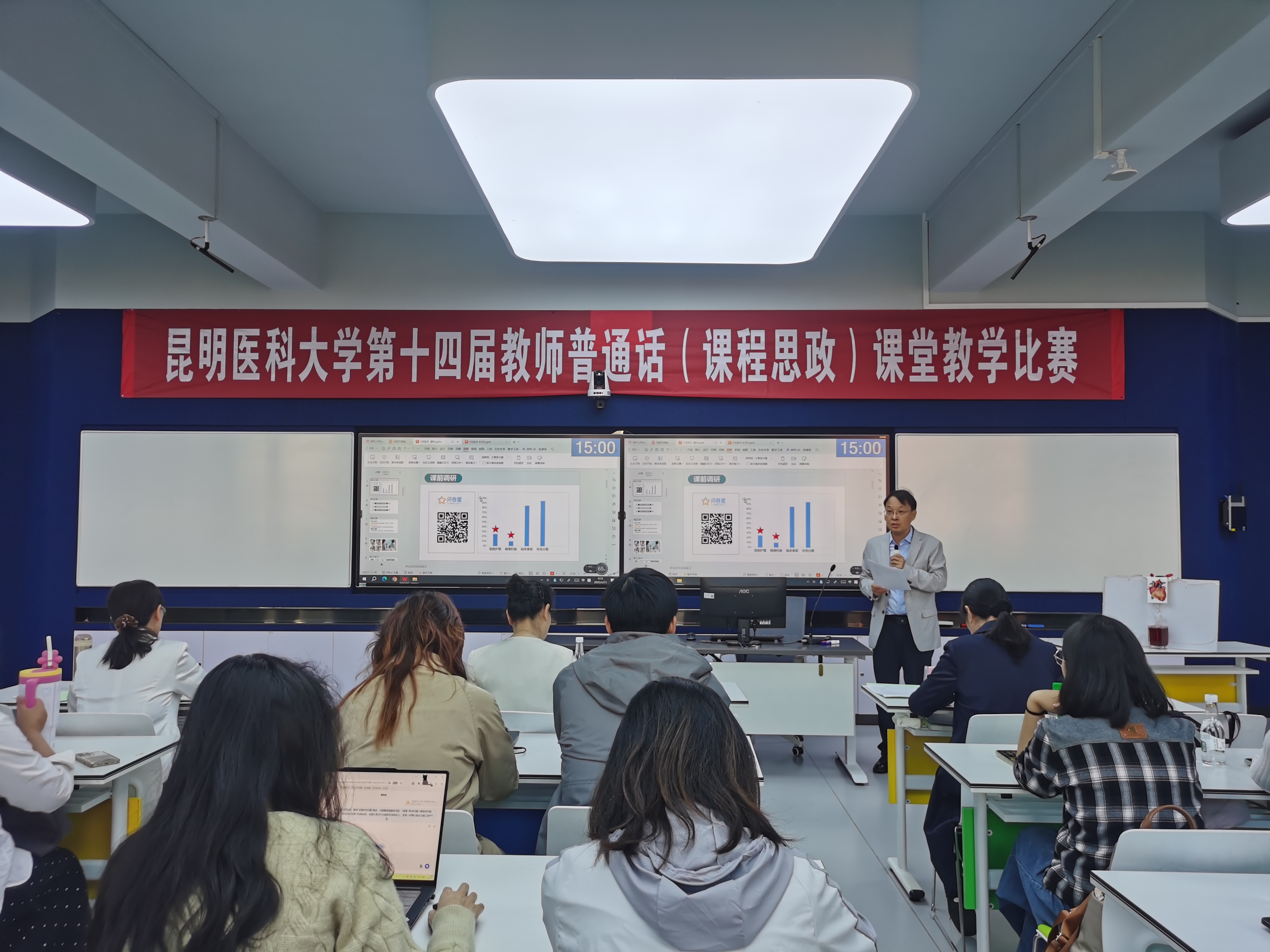 6月11日,米兰milan官方网站第十四届教师普通话(课程思政)课堂教学比赛决赛在呈贡校区举行。学校党委常委、副校长殷建忠出席决赛开幕式,相关职能部门负责人,各学院、附属医院分管教学工作负责人及教师代表在现场观摩比赛。