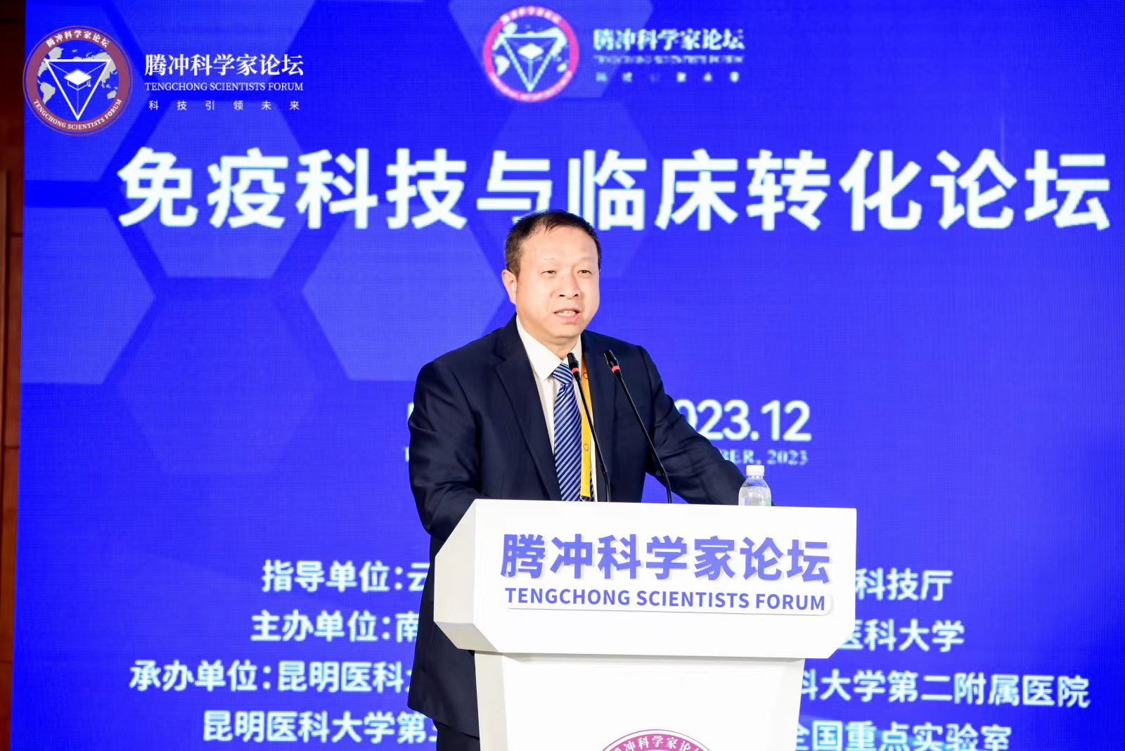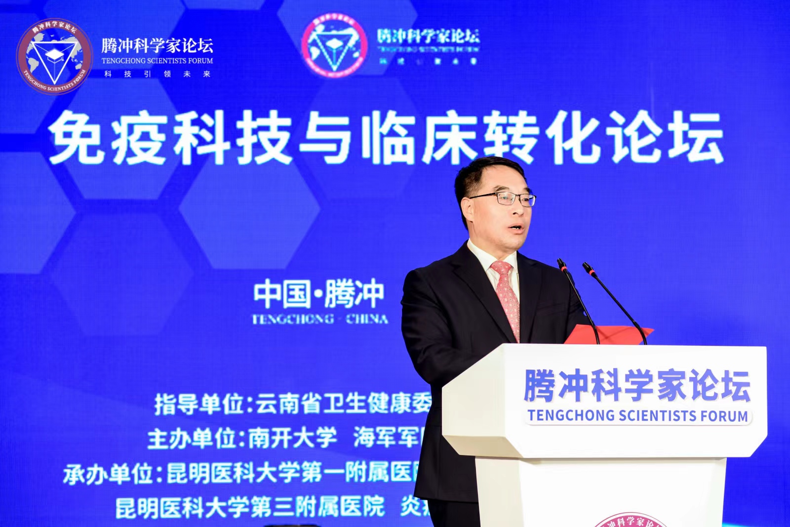 12月1日,2023腾冲科学家论坛分论坛之一的免疫科技与临床转化论坛在腾冲市举行。论坛由南开大学、海军军医大学、米兰milan官方网站共同主办,米兰milan官方网站第一附属医院、米兰milan官方网站第二附属医院、米兰milan官方网站第三附属医院和免疫与炎症全国重点实验室承办。腾冲科学家论坛联合主席、中国科学院院士饶子和,云南省科技厅党组书记、厅长王学勤,保山市人民政府副市长成德君等出席论坛开幕式。米兰milan官方网站校长夏雪山主持论坛开幕式。