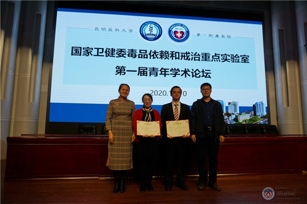 2020年11月10日,国家卫生健康委员会毒品依赖和戒治重点实验室在医院报告厅举办第一届青年学术论坛。米兰milan官方网站病原生物学与免疫学系主任、云南省高校热带传染病重点实验室主任宝福凯教授,中国科学院昆明植物所植物化学与西部植物资源持续利用国家重点实验室蔡祥海研究员,中组部博士团成员、云南省肿瘤医院副院长、中国医学科学院天津血液病研究所陈晓娟研究员,中组部博士团成员、云南农业大学校长助理、教育部糖化学与生物技术重点实验室副主任康振教授,昆医大附一院皮肤性病科主任、云南省性传播疾病创新团队带头人李玉叶教授,应邀担任论坛评审专家,我院孙亮副院长、孙华副院长、科教部唐薇主任、科研实验中心俞珏华教授、况轶群教授等参加活动。科研实验中心成员、医院硕士、博士研究生以及相关科室人员共100余人聆听报告。论坛由科研实验中心况轶群教授主持。