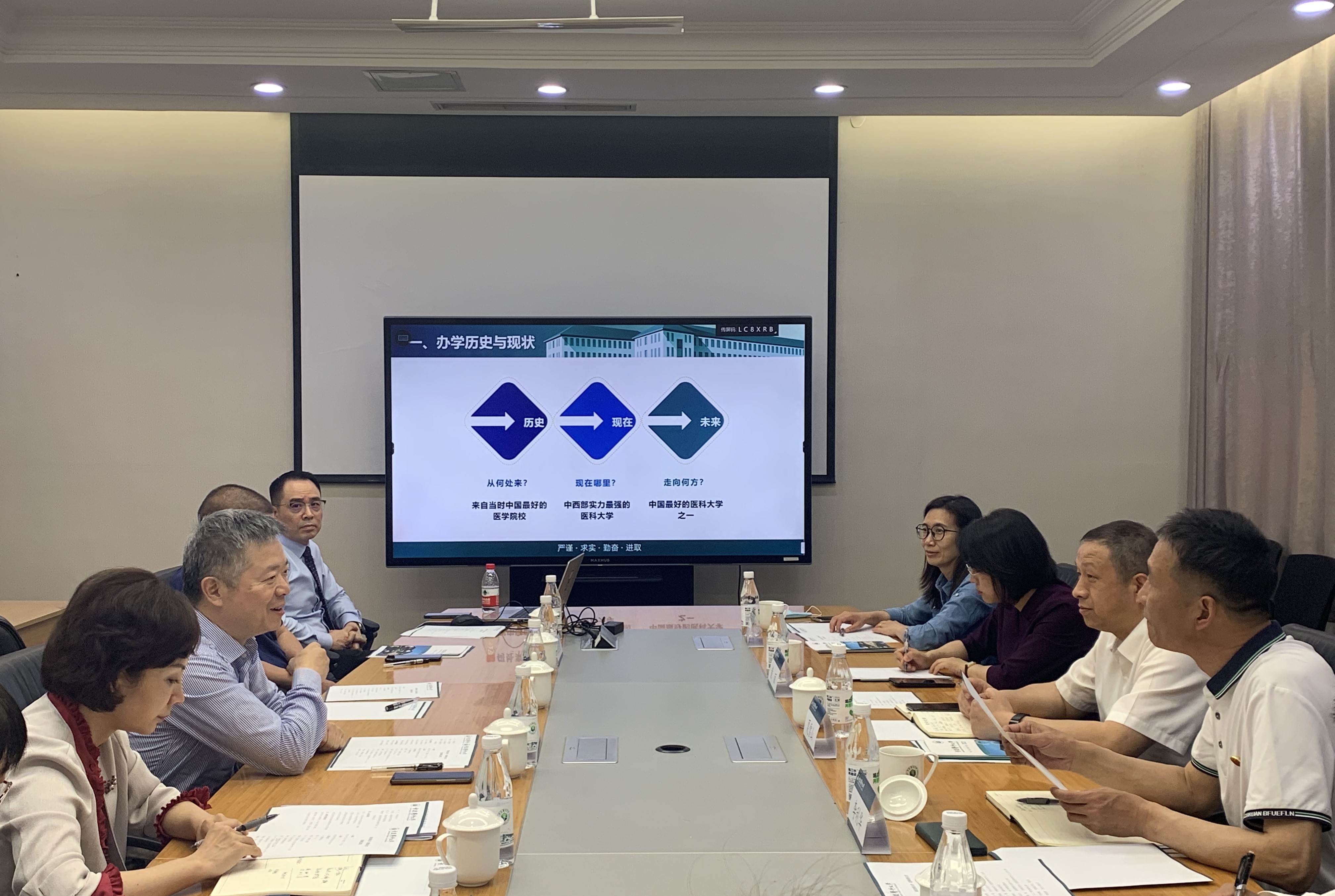 4月19日至20日,米兰milan官方网站校长夏雪山带队,党委常委、副校长李利华, 校长办公室、发展改革研究中心(改革办)、教务处、资产管理处、医院管理与发展中心负责人一行赴重庆医科大学等地交流学习。重庆医科大学党委副书记、副校长邓世雄以及相关部门负责人参加座谈交流。