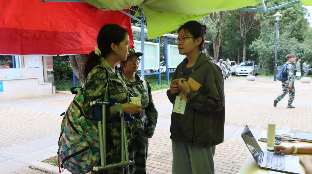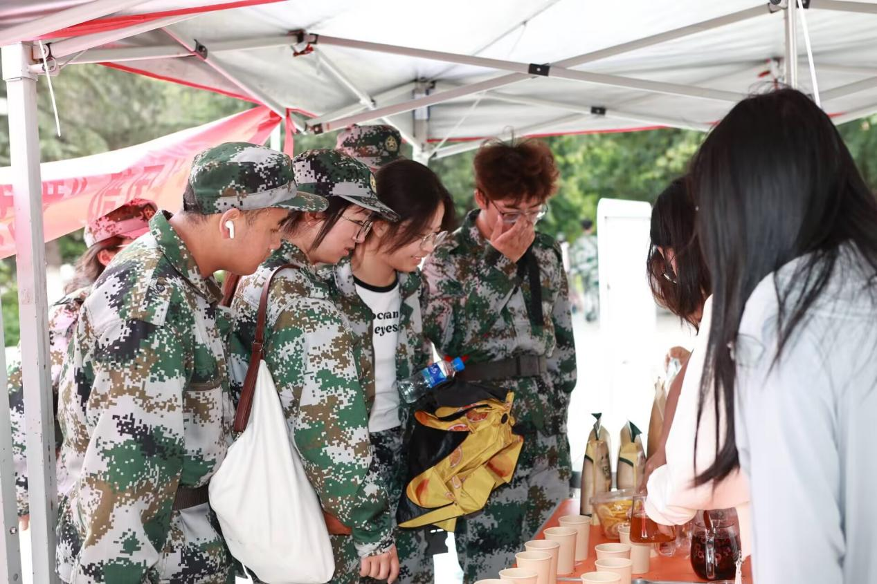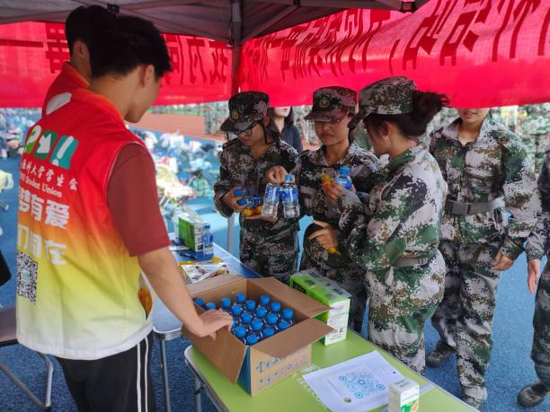 校学生会精心策划并举办了“我为同学做件事”——“军训能量补给站”活动,在田径场为军训的同学们准备了矿泉水、小面包、巧克力和纸巾等补给物资,向同学们提供帮助和休息环境,确保新生们在高强度训练后能够及时补充能量,保持良好的身体状况。