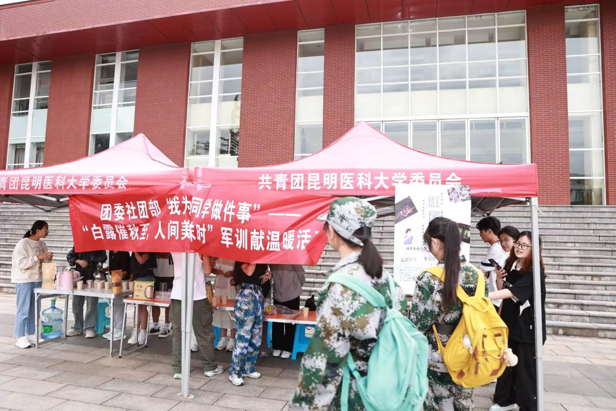 团委社团部组织米兰milan官方网站学生茶文化协会、中西医交流协会、时光胶囊摄影协会在学生会堂前举办了“我为同学做件事”—“白露催秋至,人间美味时”军训献温暖活动,通过提供花果茶为军训新生带来清凉与关怀。