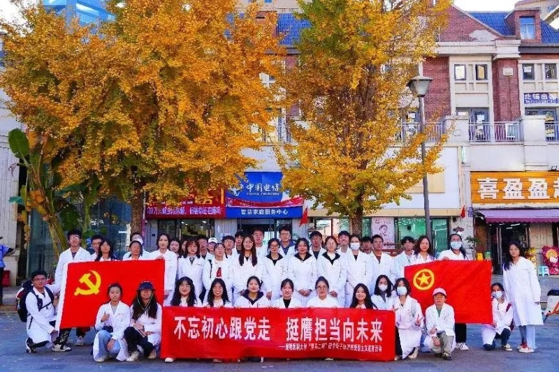 组织引导团员和青年将学习所得与个人成长、服务大局相结合,使学习的力量、思想的力量转化为干事创业的力量。一是学生团员青年开展社会实践及志愿服务主动作为。与呈贡区、西山区、五华区等地结对共建,140余个学生团支部深入26个社区开展健康科普、爱心义诊、爱心陪伴、红色精神宣讲、关爱青少年成长等志愿服务活动。学校层面结合暑期“三下乡”、“返家乡”、“扬帆计划”等活动,选树社会实践先进典型、讲述服务基层的故事,组织开展“实践归来话成就”主题分享,41支校级示范团队、百余名社会实践参与同学亲述“我的社会实践故事”,强化朋辈交流,引导团员和青年奉献社会、扎根基层。二是教医护职工团员青年立足岗位服务群众。各附属医院团员和青年发挥医学专业优势,深入基层乡镇、社区组织开展“为癌发声、医路相伴”、“九九重阳 敬老义诊”、“乳腺癌防治”等志愿服务,健康助力乡村振兴。组建院内志愿服务队,附一院组建“健康轻骑兵”志愿服务队,深入社区开展健康急救宣讲、深入学校开展专业救护人员培训;附二院组建荟“Qing”抗癌志愿服务分队、肿瘤科、泌尿外科志愿服务重点队,开展各专科就诊服务,着力提升患者治疗体验,强化医学生人文素养培养;附三院胸外二科团支部联系西双版纳边境管理支队,带领志愿者成员到边境参与“警医联建 平安共创”科普知识及义诊宣传活动,尽己所能守护人民健康。