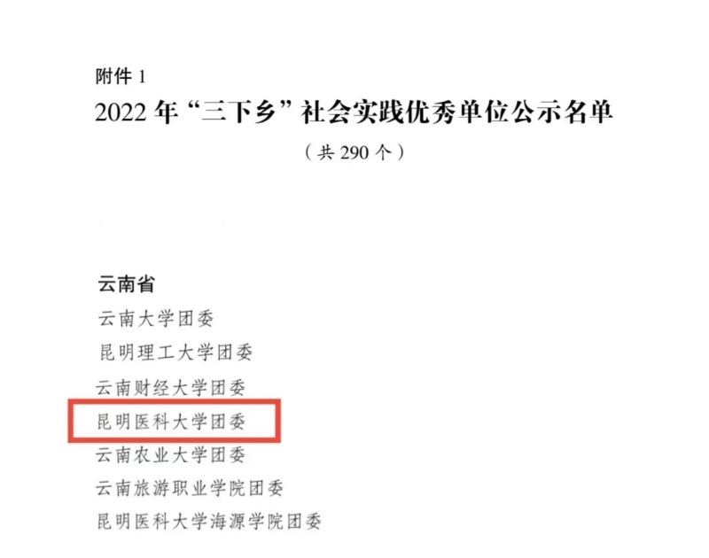 为深入总结交流经验、选树典型宣传、推动引领示范、激励广泛参与、发挥育人实效,共青团中央青年发展部(团中央)公示了2022年全国大中专学生志愿者暑期“三下乡”社会实践优秀单位名单。我校荣获2022年全国大中专学生志愿者暑期文化科技卫生“三下乡”社会实践活动优秀单位。